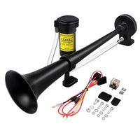 GAMPRO 12V 150DB Car Air Horns, 18 Inches Chrome Zinc Single Trumpet Truck Air Horn with Compressor for Any 12V Vehicles Trucks Lorrys Trains Boats Cars (BLACK)