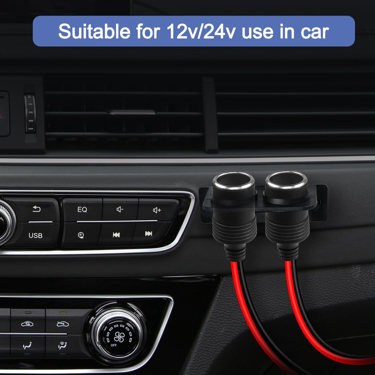 Hatmini Car Charger Power Cigarette Lighter Female Socket Cable Plug Adapter To Bare Wire Open End Cable? Used To Replace Or Add Additional Cigarette Lighter Socket Ports, Suitable For Dc 12V /24V Car Chargers, Etc., And Supports Devices With A Maximum Power Of 120W. The Red Wire Goes To The Positive Power Supply And The Black Wire Goes To The Negative Power Supply. Wire Gauge: 18Awg. Voltage: 12V-24V. Output Power: 120W. Cord Length: 30Cm/1Ft. Material: Pure Copper Wire. Note: 1. Please Do Not Operate With Electricity, It Is Very Dangerous! 2. The Red Wire Is Connected To The Positive Pole Of The Power Supply, And The Black Wire Is Connected To The Negative Pole Of The Power Supply. Please Check Before Powering On, If The Connection Is Wrong, Your Device Will Be Damaged! 3. Please Try Not To Use Devices With A Power Exceeding 120W! What You Get: 3 X 1Ft Car Cigarette Lighter Socket With Bare Wire Open End Cable
