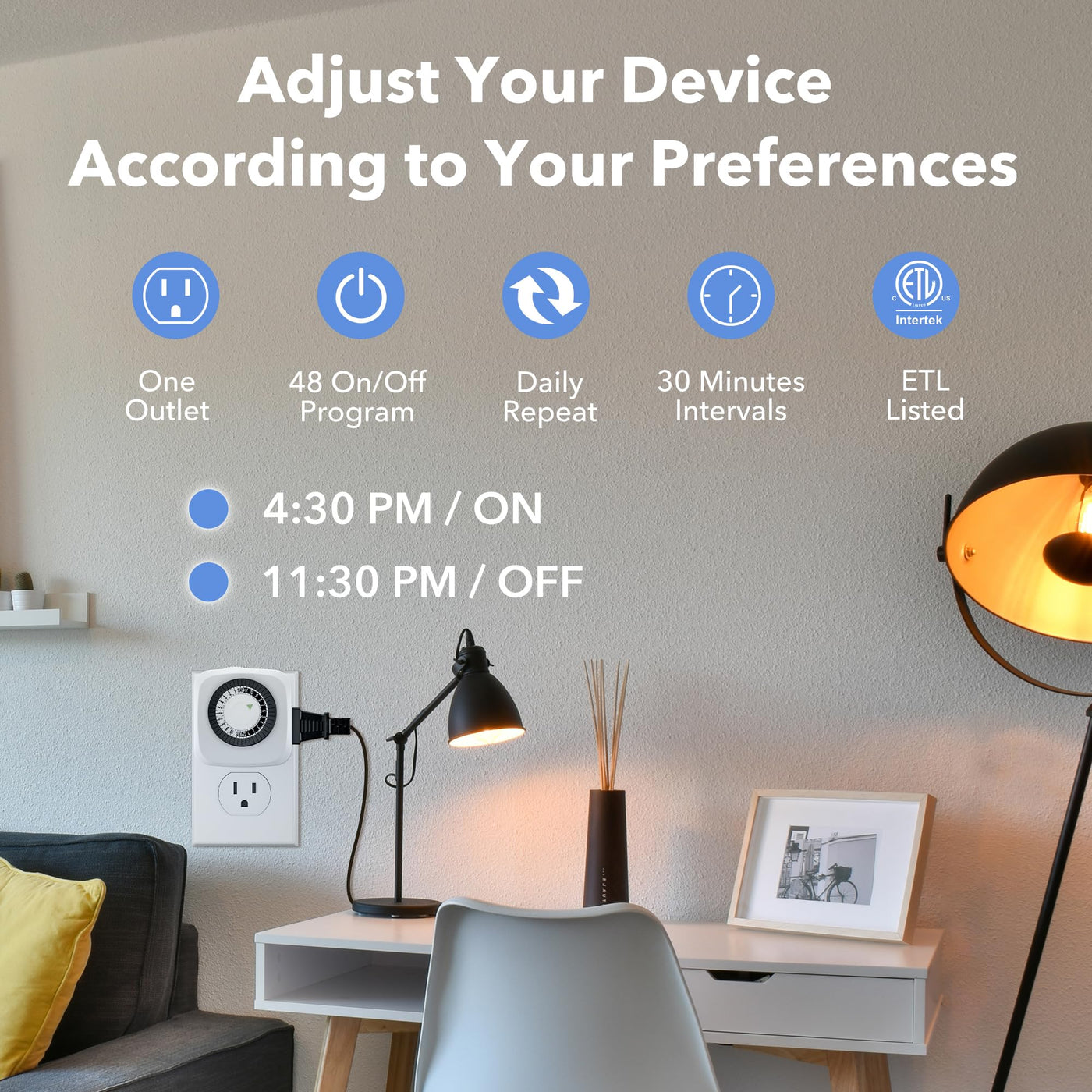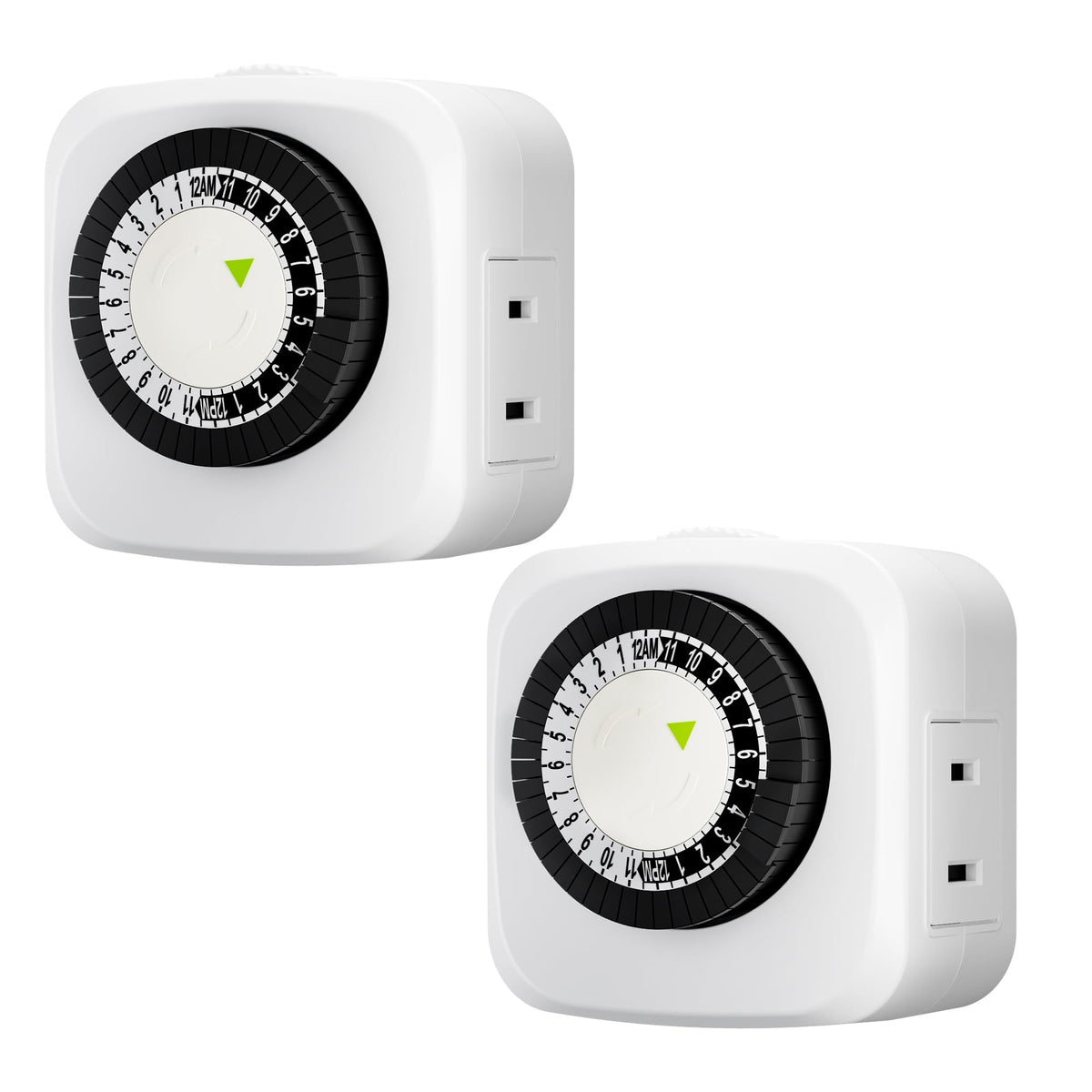 Hbn Indoor Timers Plug Mechanical 2 Prong 24-Hour Mini Lamp Timers 2 Pack, For Electrical Outlets, Fish Tank, Fans, Led Lights
