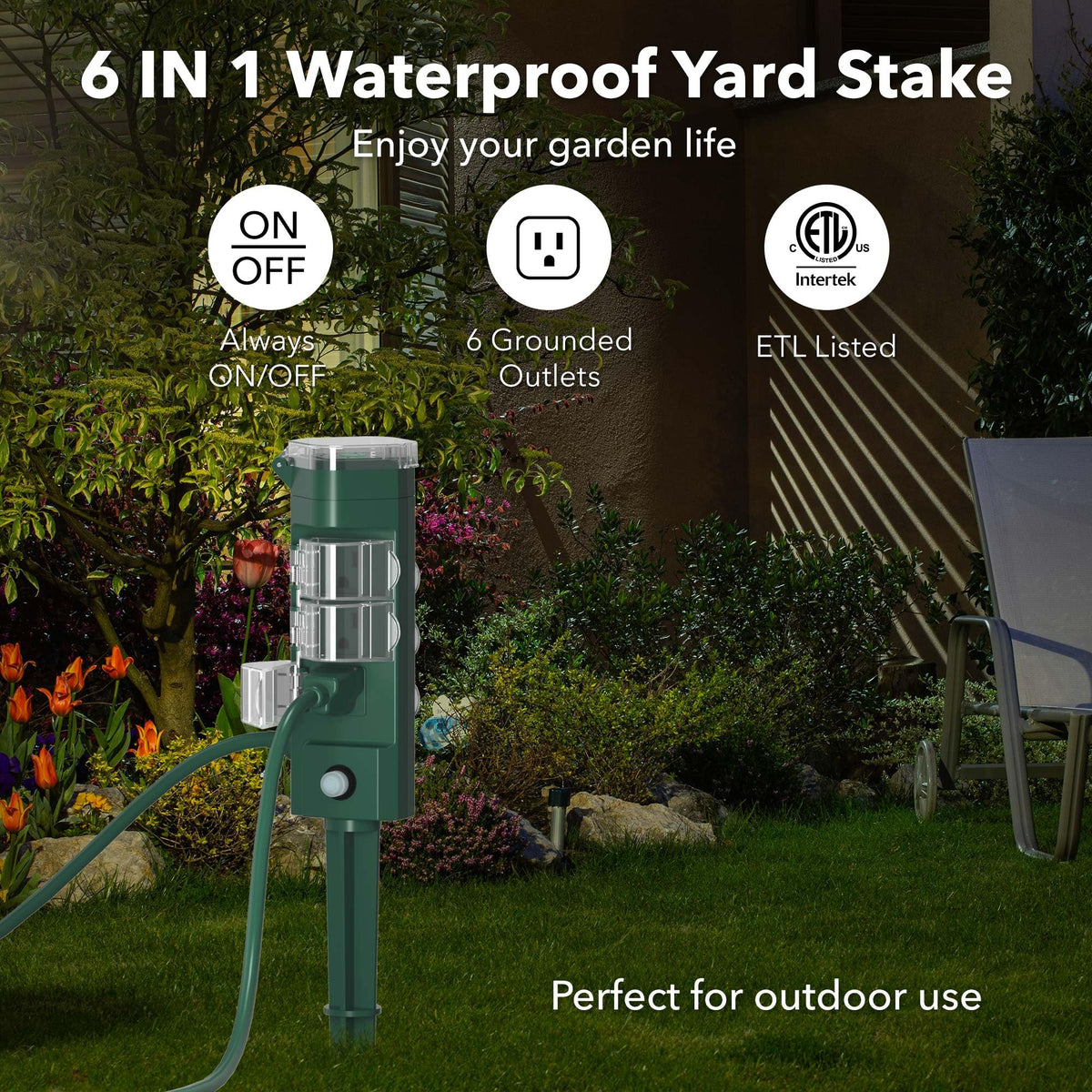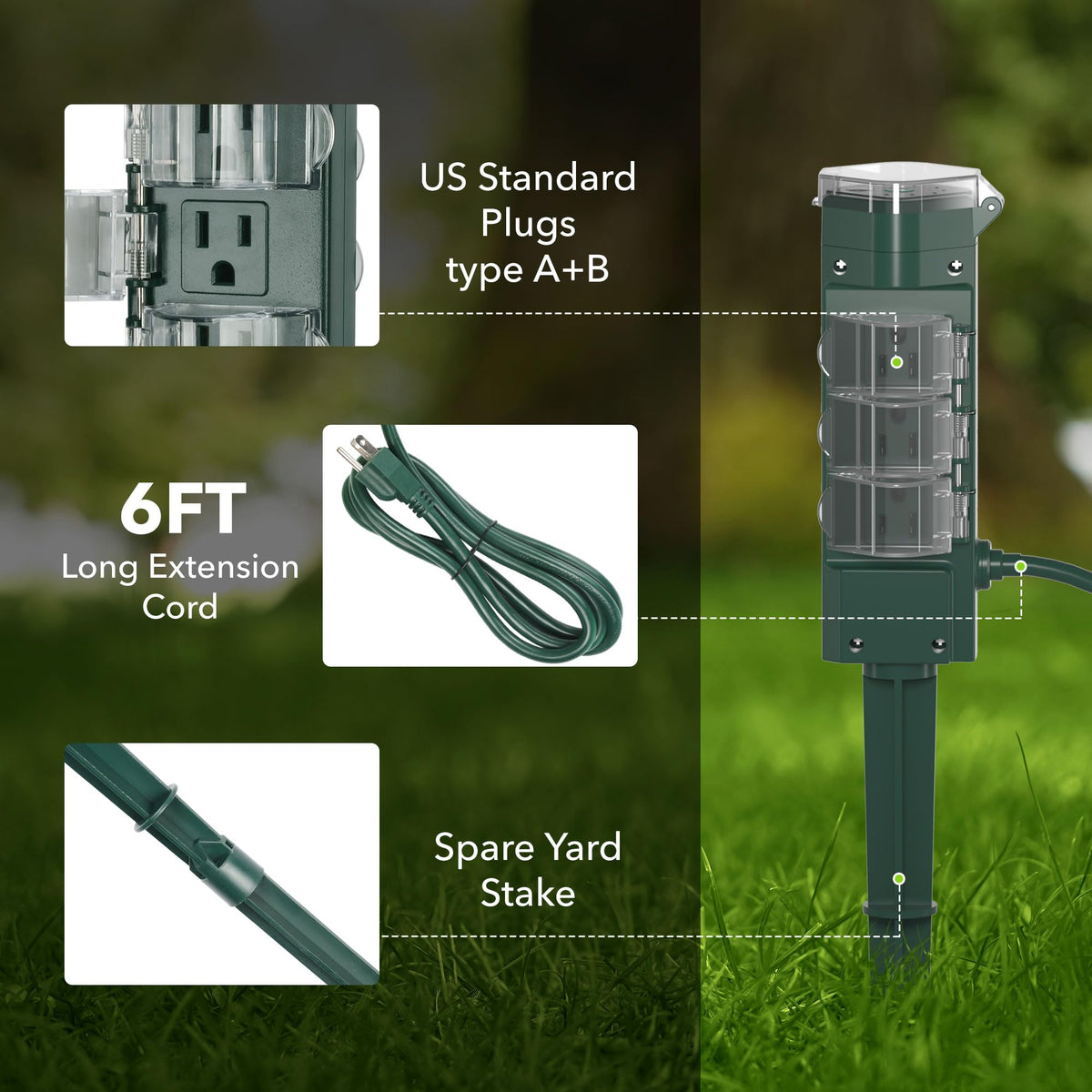 Hbn Outdoor Power Strip Timer With Photocell, Yard Stake Countdown Timer(2, 4, 6, 8 Hour),Outside Lights Timer Dusk To Dawn,Weatherproof Extension Cord For Christmas Lights, Outdoor Lights,6 Outlets