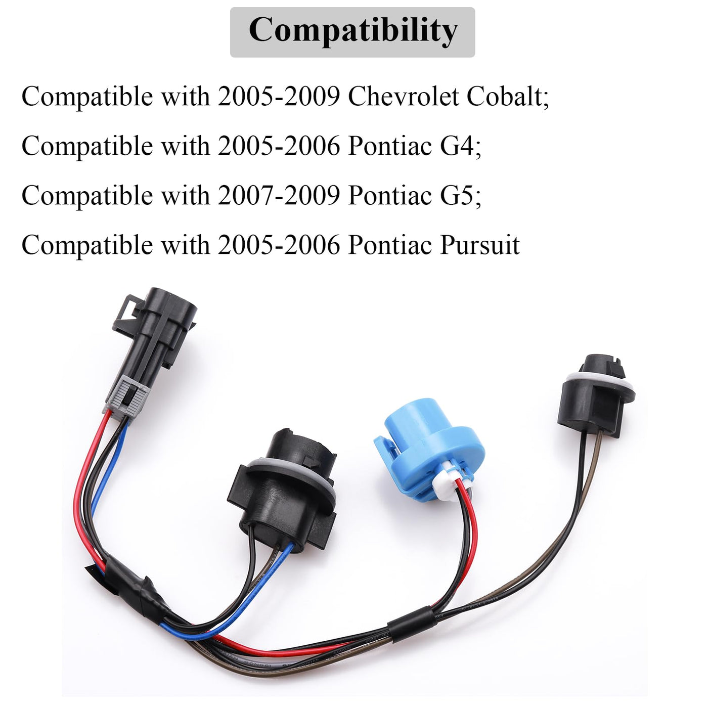 Q: What vehicles are compatible with the HOPUT 645-205 Headlight Wire Harness?A: The HOPUT 645-205 Headlight Wire Harness is compatible with Chevy Cobalt and Pontiac models. It is essential to verify compatibility using the provided OE numbers: 22740620, 22740621, and 645-205.