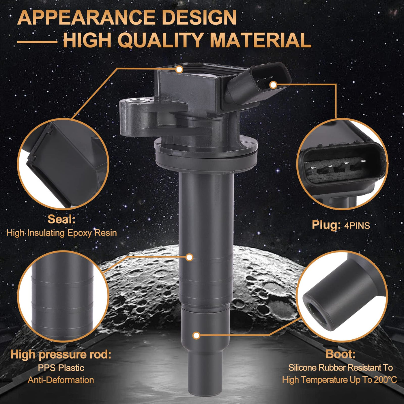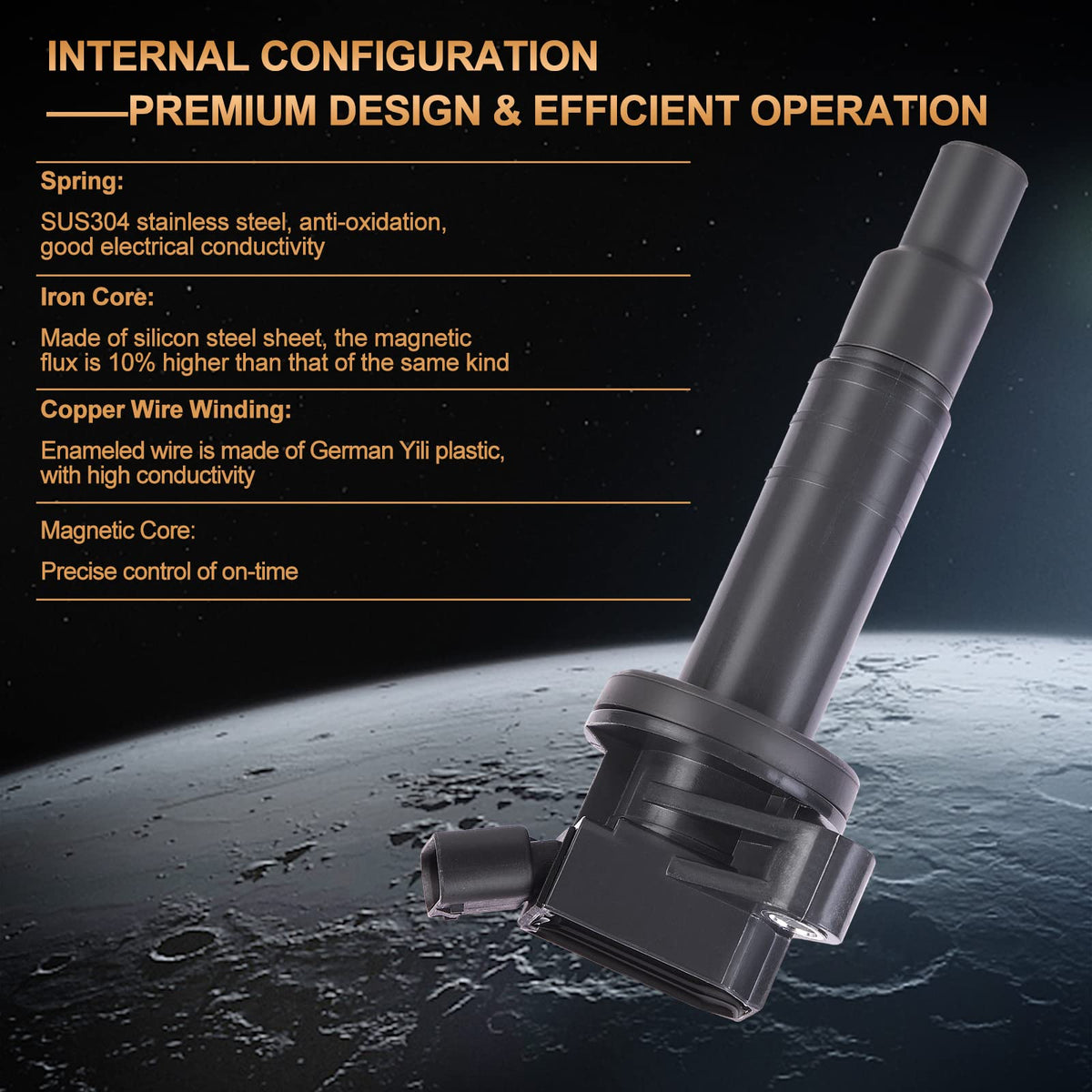 Compatible With Toyota Models:Compatible With Toyota Corolla 1.8L L4 2000-2008Compatible With Toyota Matrix 1.8L L4 2003-2008Compatible With Toyota Celica GT 1.8L L4 2000-2005Compatible With Toyota MR2 Spyder 1.8L L4 2000-2005Compatible With Chevy Models:Compatible With Chevy Prizm 1.8L L4 2000-2002Compatible With Pontiac Models:Compatible With Pontiac Vibe 1.8L L4 2003-2008How to maitain the ignition coils in a correct way?If the ignition coils are not used in the right way, they will get damaged easily.Customers should notice the following tips when using ignition coils:Switch off the ignition coils when the engine isnt in working status.Avoid putting the ignition coils under heated or damp .Spark plugs should not be hung Compatible with a long time and should be replaced termly.Control the engines per Compatible with mance properly to restrain from over voltage.Check, clean and fasten the circuit connector regularly in order to short-circuit phenomenon.The water on the ignition coil can only be dried with cloth and must not be roasted with fire, otherwise the ignition coils will be damaged.