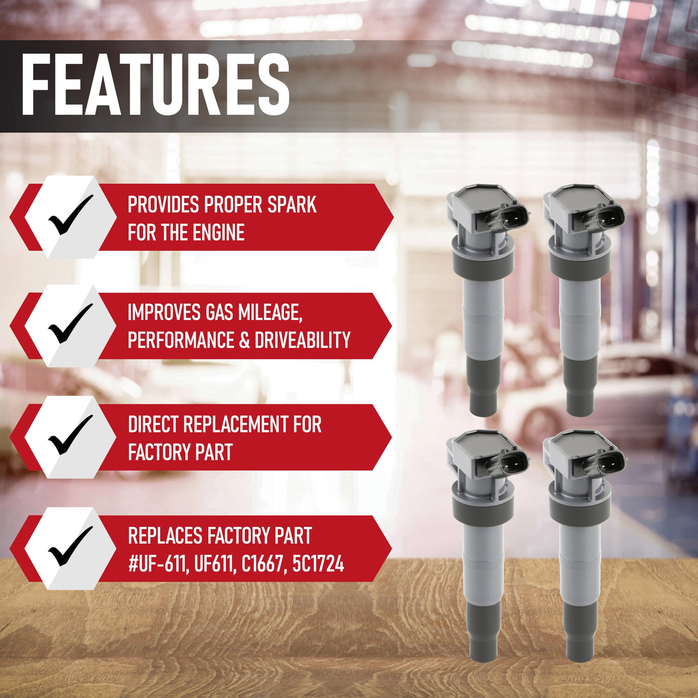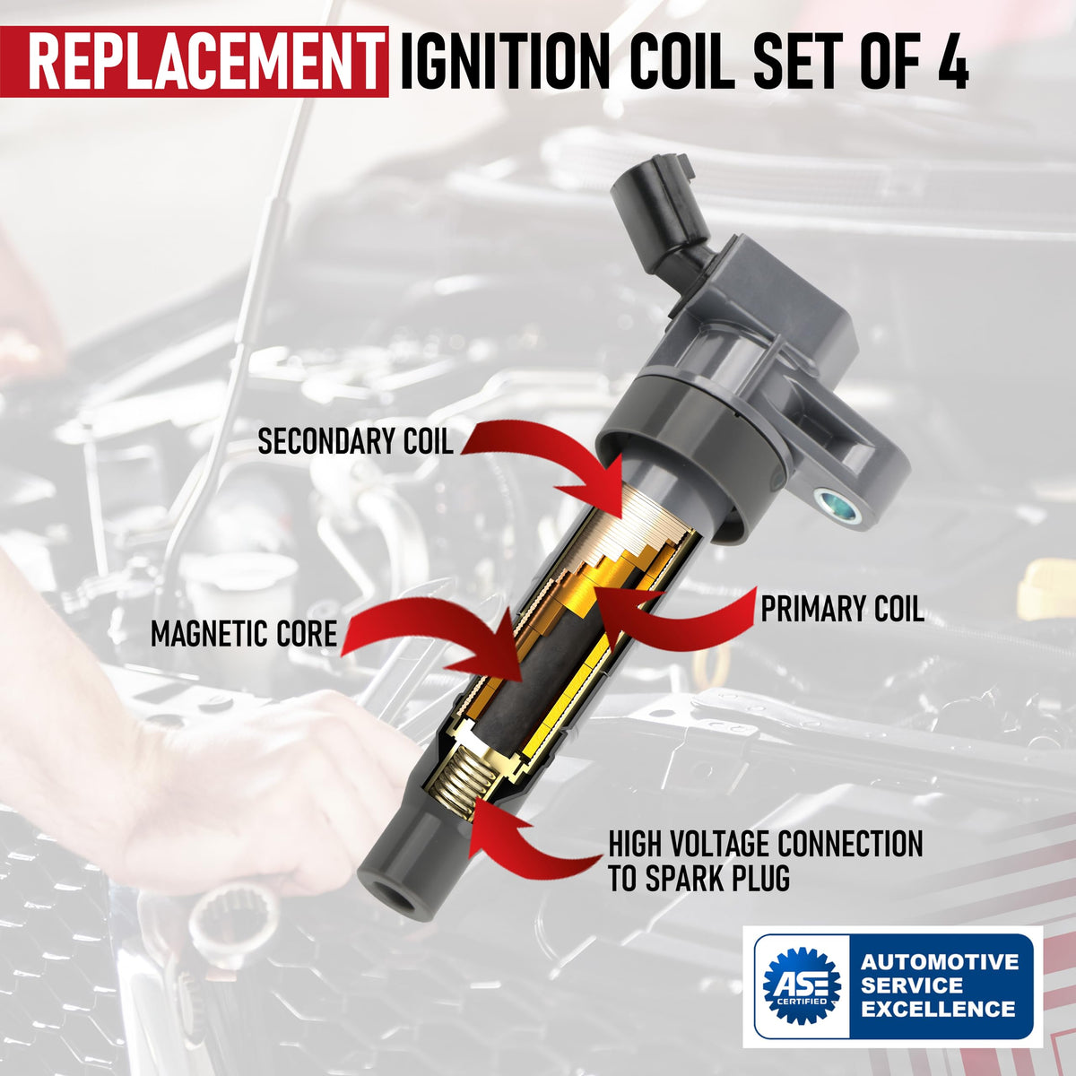 Ignition Coil Pack Set of 4 by AA Ignition - Compatible with Hyundai & Kia 2.0L, 2.4L, 4.6L 2008-2017 - Santa Fe, Sonata, Tucson
