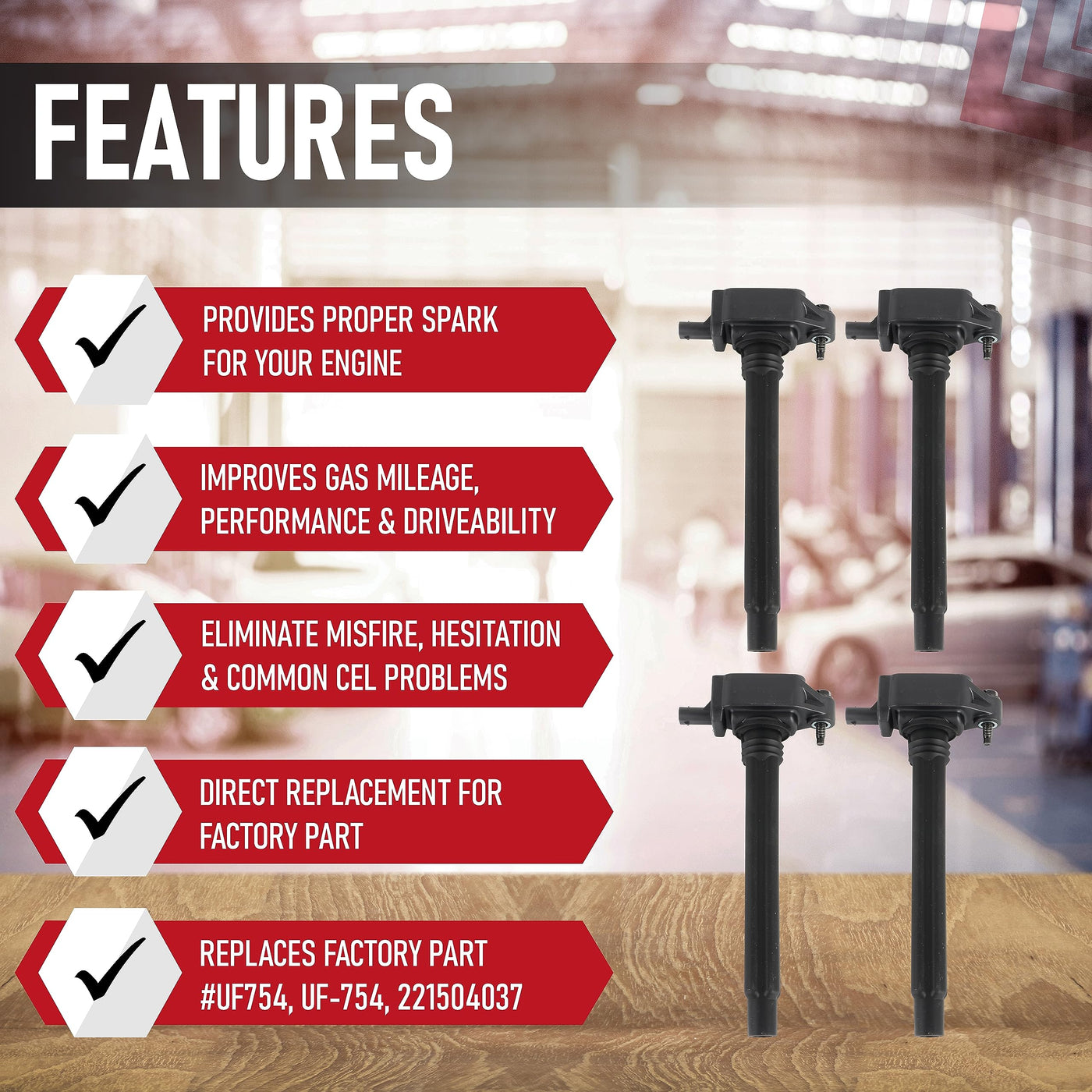 Ignition Coil Pack Set Of 4 - Compatible With Chrysler, Dodge, Fiat, Jeep And Ram 2.4L Engines - 200, Dart, 500X, Cherokee, Comp