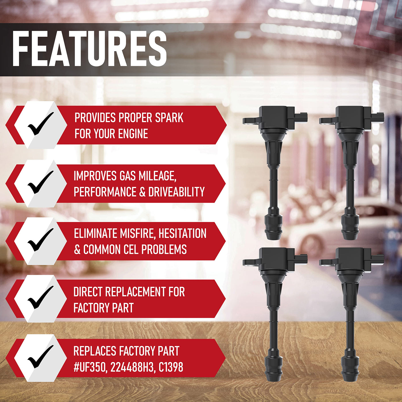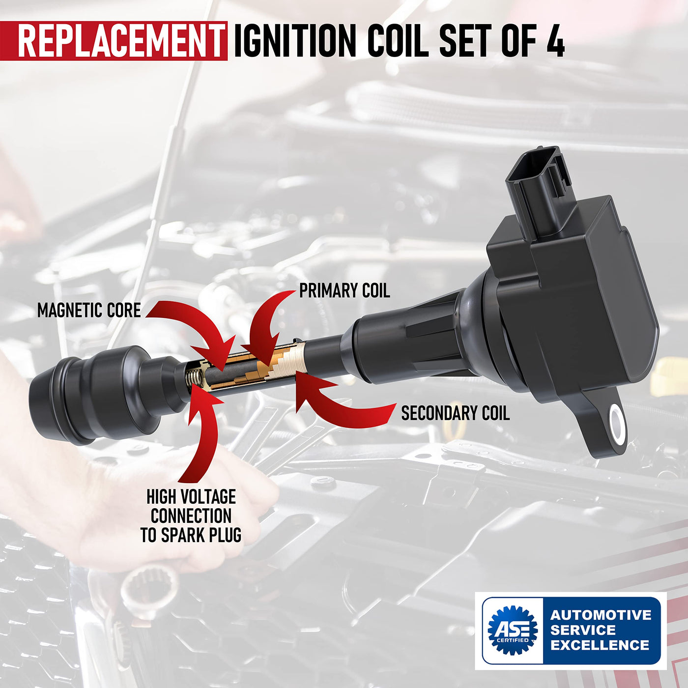 Ignition Coil Pack Set Of 4 - Compatible With Nissan Vehicles - 2002, 2003, 2004, 2005, 2006 Altima 2.5L, Sentra 02, 03, 04, 05,