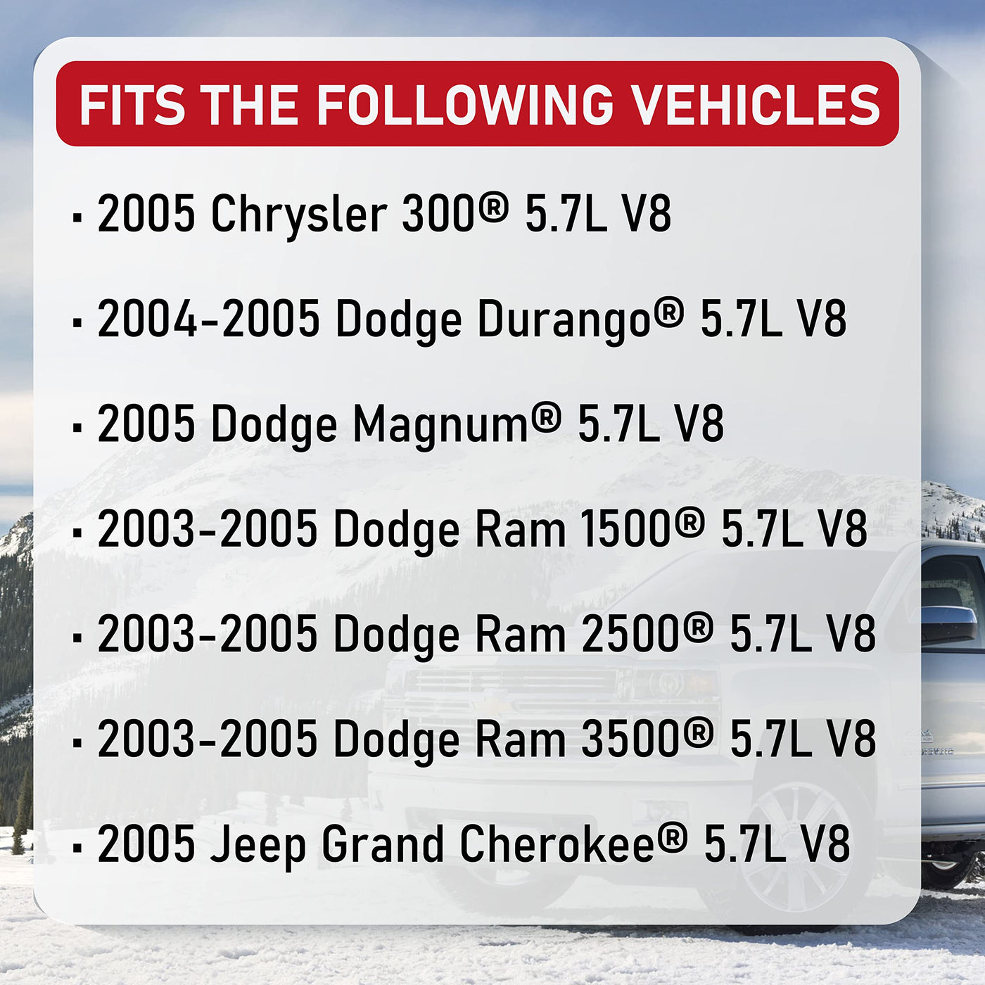 If your vehicle has begun to misfire, idle erratically, or hesitate under acceleration a bad coil pack could be to blame. By providing the proper spark to the spark plug all of these running issues can be resolved. This AA Ignition Coil Pack is a direct replacement for the factory coil. Made by an original equipment supplier (OEM) these coil packs surpass the factory quality and will get your engine running how it should be; smooth and fast. This Ignition Coil Pack fits the following Models: 2005 300 5.7L V8 2004-2005 Durango 5.7L V8 2005 Magnum 5.7L V8 2003-2005 Ram 1500 5.7L V8 2003-2005 Ram 2500 5.7L V8 2003-2005 Ram 3500 5.7L V8 2005 Grand Cherokee 5.7L V8 Replaces the following part numbers: 56028394AB, 56028394AC, 56028394AD, 52-1758 C648 Complete set of 8 ignition coils. Manufactured by AA Ignition, exceeds the factory specification, and carries a 24 month or 24,000 mile warranty. The vehicle makes, models and part numbers are used in this listing only to identify the vehicles this ignition coil fits.