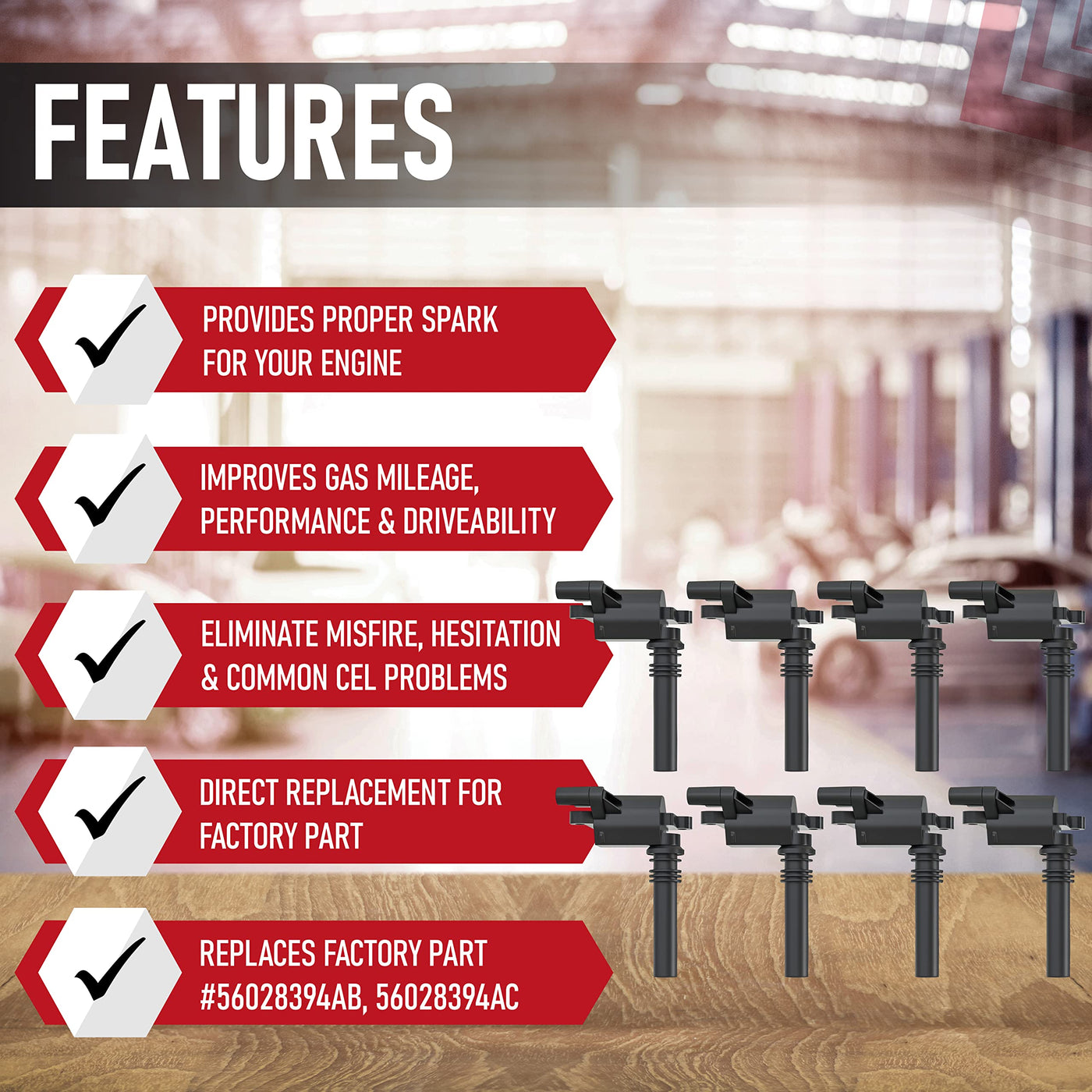 Ignition Coil Pack Set Of 8-5.7L V8 Hemi Engine - Replaces 56028394Ab, 56028394Ac - Compatible With Chrysler, Dodge & Jeep Vehic