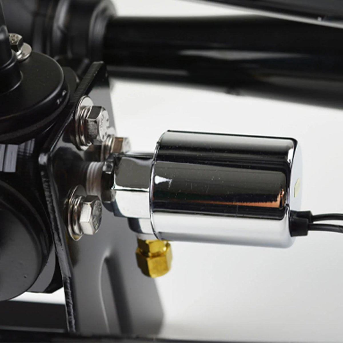 Q: How does the train horn operate and what is its pressure range?A: This train horn operates using a heavy-duty 12/24V DC electric solenoid valve and has a pressure range of 50 to 125 psi, ensuring powerful sound output.