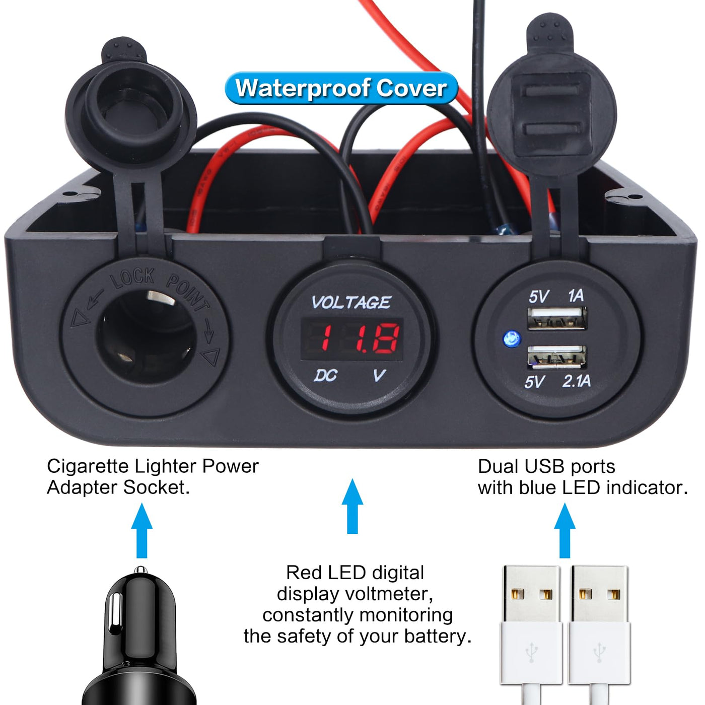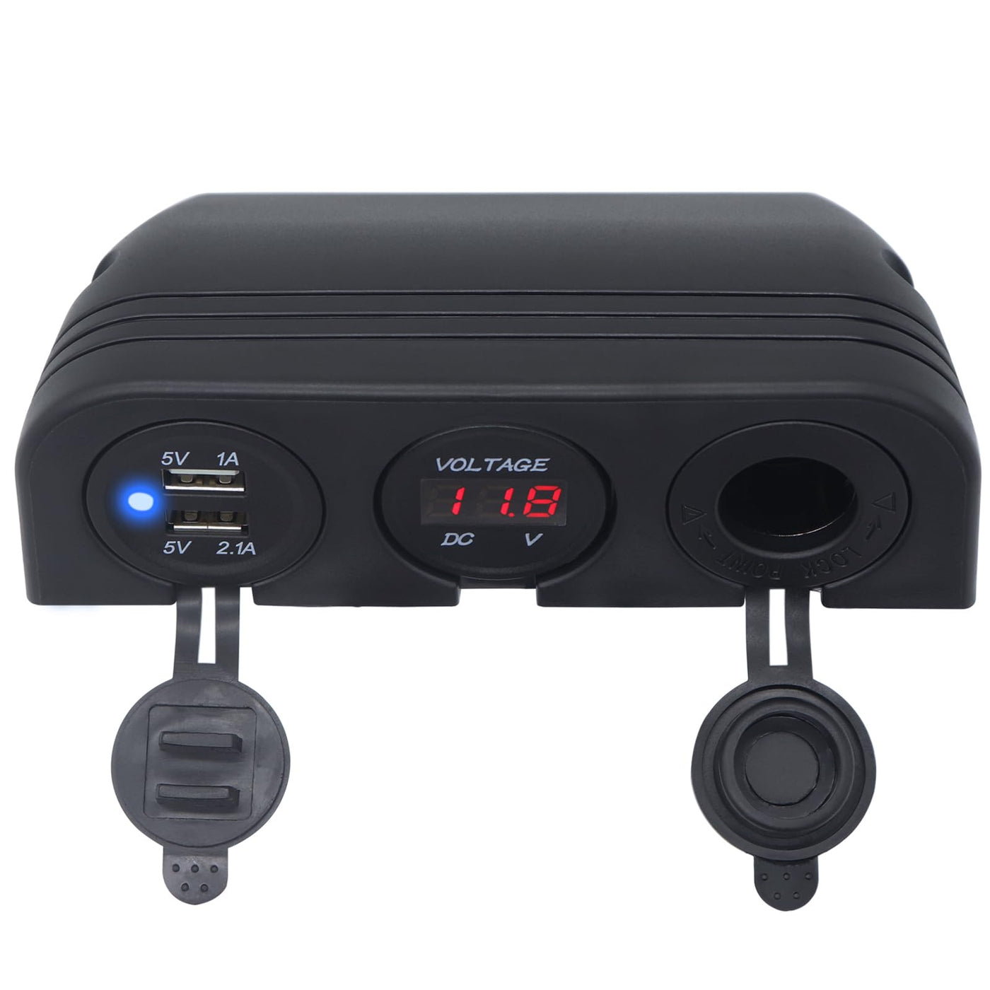 Iztor 12/24V Multifunctional 3-Hole Tent Panel Modification Socket Cigarette Lighter Socket+Usb Car Charger And Red Digital Voltmeter Combination For Cars Boats And Rvs
