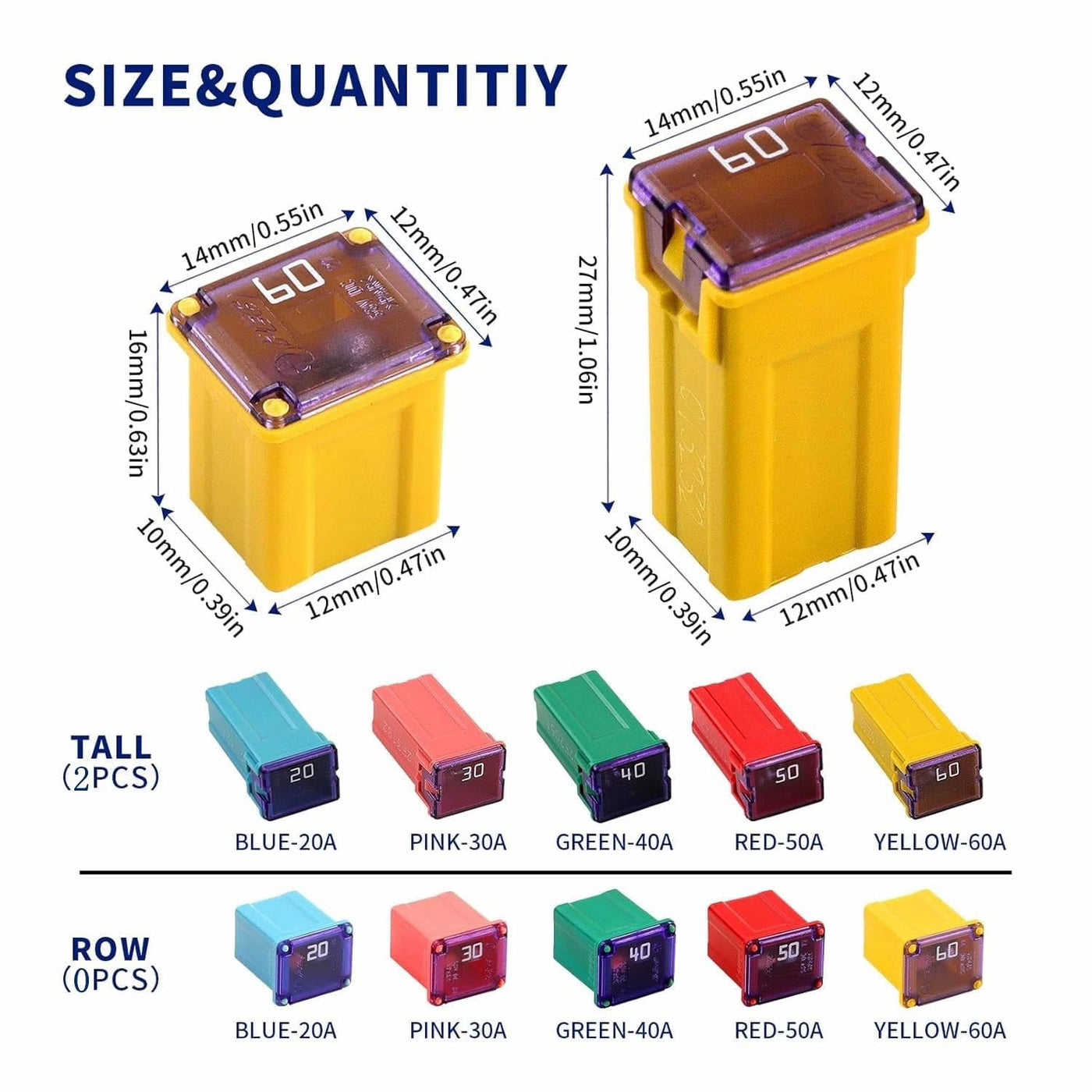 Jcase Fuse Kit Mini Jcase Fuse Assortment High Profile 20A 30A 40A 50A 60A Fit For Ford Chevy/Gm Nissan And Toyota Pickup Trucks