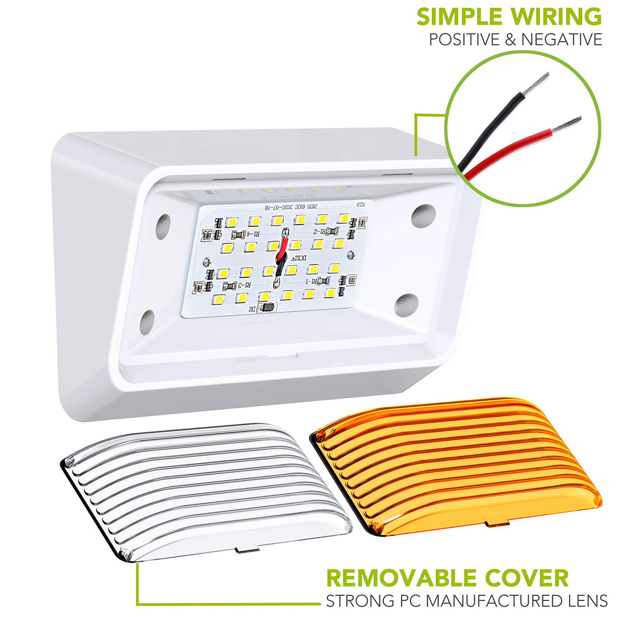 New Led Rectangle Porch Light Without Switch 280Lum Cool White Description: Led Rectangle Porch Light Fixture 280 Lumens Made With Environment-Friendly Technology And Materials. Wide Voltage Range : 11-18 Volts Applications Include 12 Volts Dc Recreational Vehicles. Rv Fluctuations Can Damage A Regular Led. This Led Is Designed To Withstand A Wide Operating Voltage Range. Beam Pattern : 120 Degrees Color Temperature : 6000-6500K Cool White 24 High Power 2835 Leds. 2.7 Power Watts 60,000 Hour Life Expectancy. Last Many Times Longer Than Standard Light Bulb