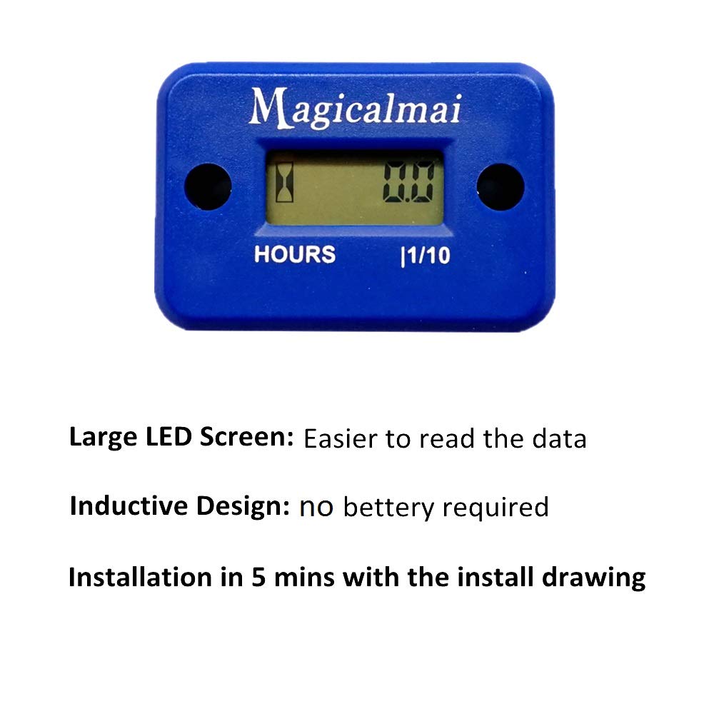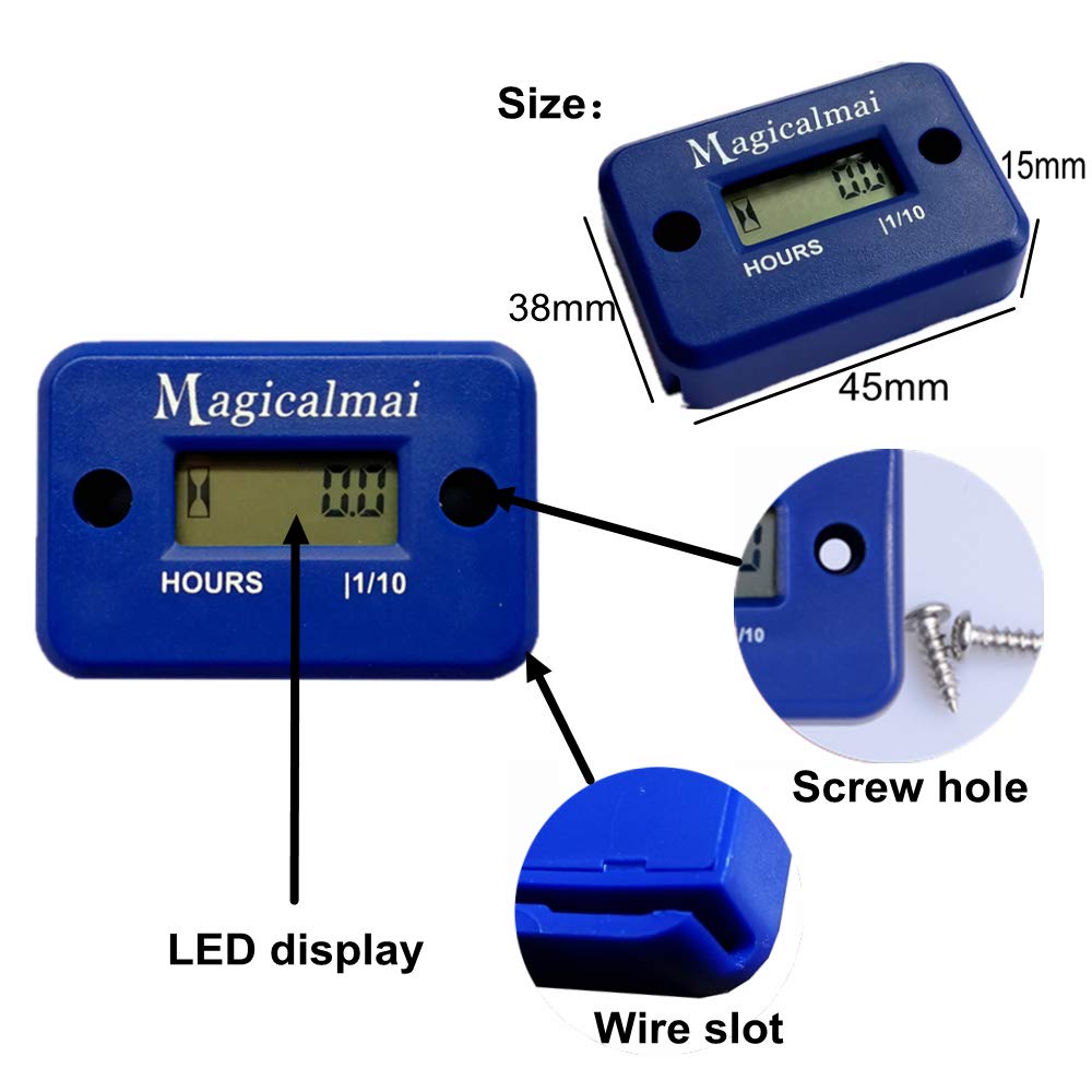 Magicalmai Inductive Hour Meter For Gas Engine Generator Lawn Mower Pressure Washer Marine Atv Boat Outboard Motor Dirt Bike Motorcycle Waterproof Hr Meters - Blue