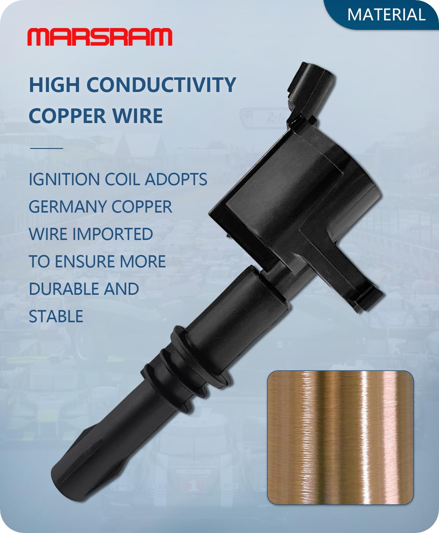 Q: What materials are used in the construction of the ignition coil pack?A: The exterior of the Marsram Ignition Coil Pack is made from epoxy resin and high-strength engineering plastic, which helps prevent melting due to engine overheating. The internal components are crafted from high-conductivity copper for improved ignition performance.