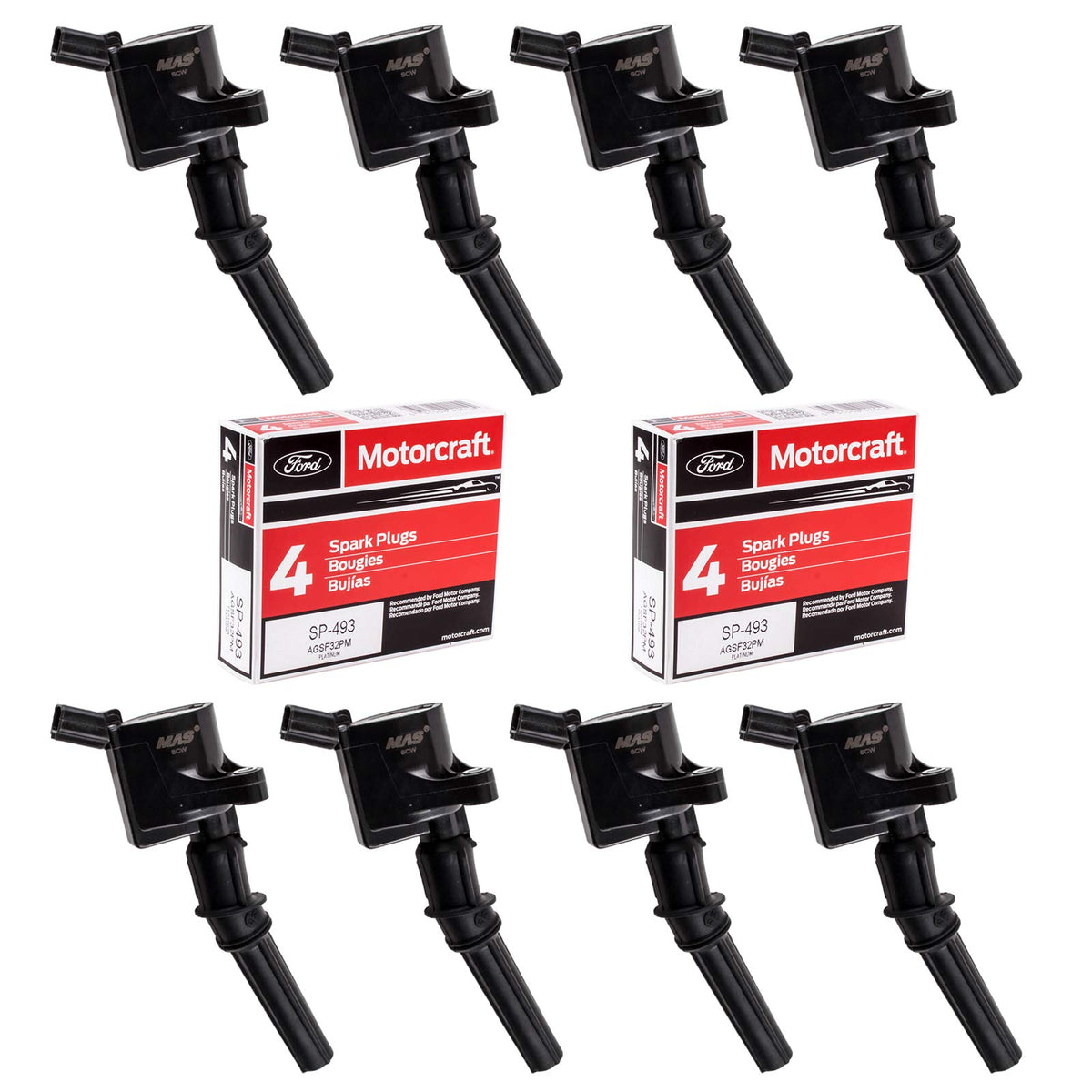 Mas Ignition Coils Dg508 And Motorcraft Spark Plugs Sp493 Compatible With Ford Lincoln Mercury 4.6L Engines