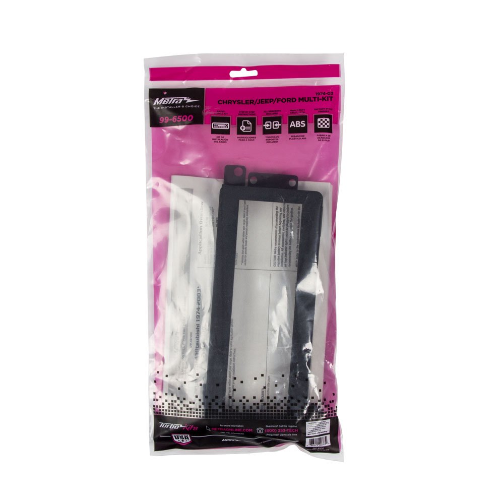 Q: Is the Metra 99-6500 Dash Kit compatible with my vehicle?A: The Metra 99-6500 Dash Kit is designed specifically for Chrysler, Ford, and Jeep models from 1974 to 2003. Please check your vehicle's make and model to ensure compatibility.