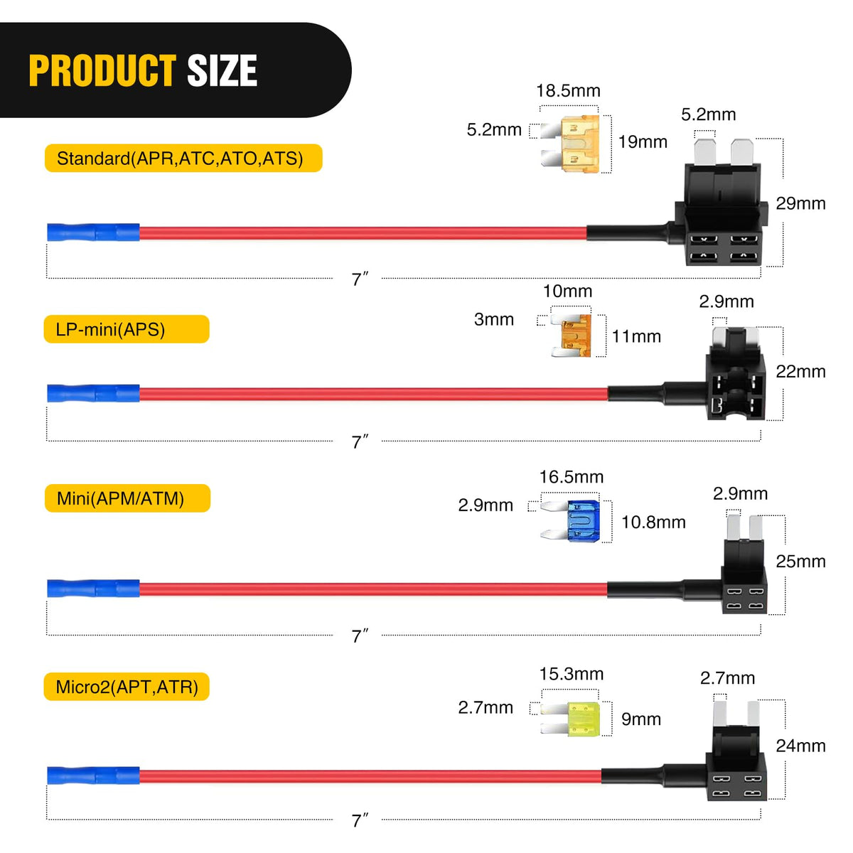 Nilight 24 Pcs 12V Car Add-A-Circuit Fuse Tap Standard Mini Micro2 And Low Profile Fuse Taps 4 Types Ato Atc Atm Apm Fuse Holder