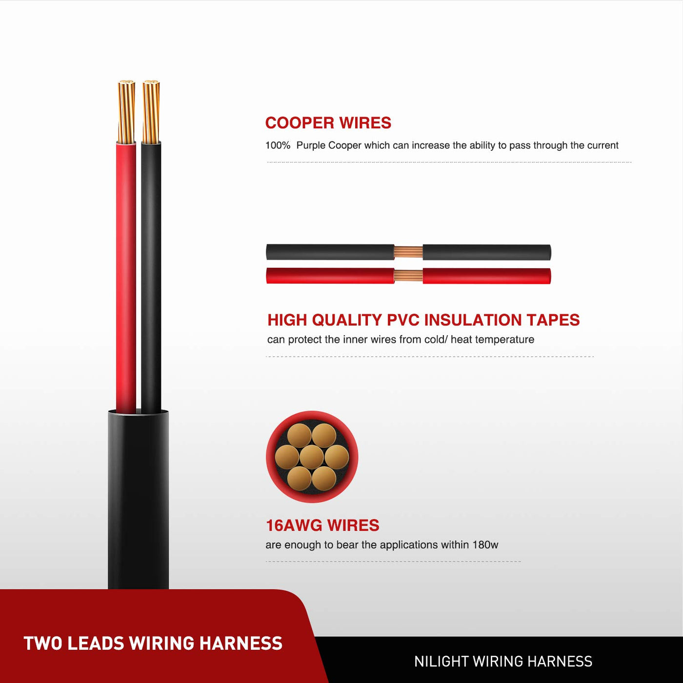 Q: What is the gauge and length of the Nilight Wire Extension?A: The Nilight Wire Extension comes in a 16 AWG gauge and is 3 feet long, providing ample length to reach your desired lighting location.