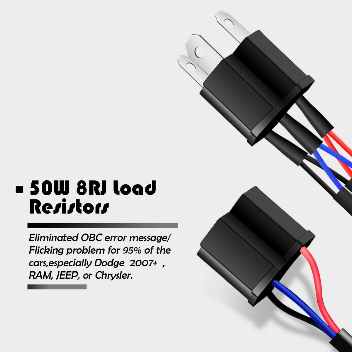 O-Nex H4 9003 Led Load Resistor Kit 50W 8Ohm Headlight Bulb Relay Harness Adapter Anti Flicker Error Decoder Warning Canceller