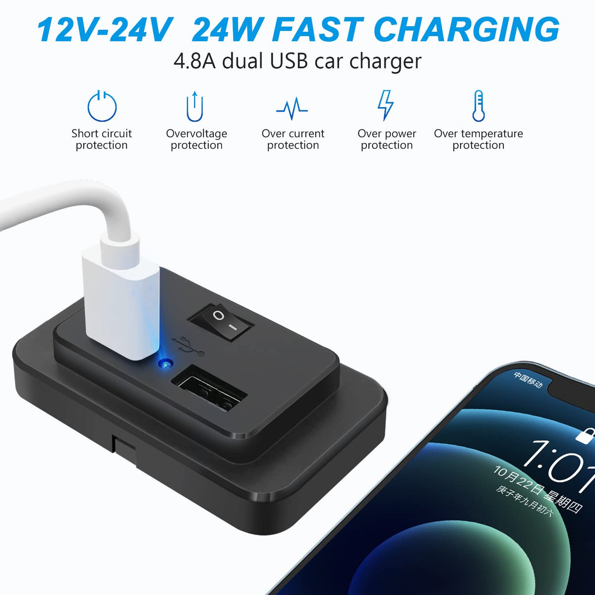 On/Off Switch Rv Usb Outlet 4.8A 12V 24V Dual Usb Power Outlet Wall Charger Socket For Bus Boat Atv Vehicle With Indicator