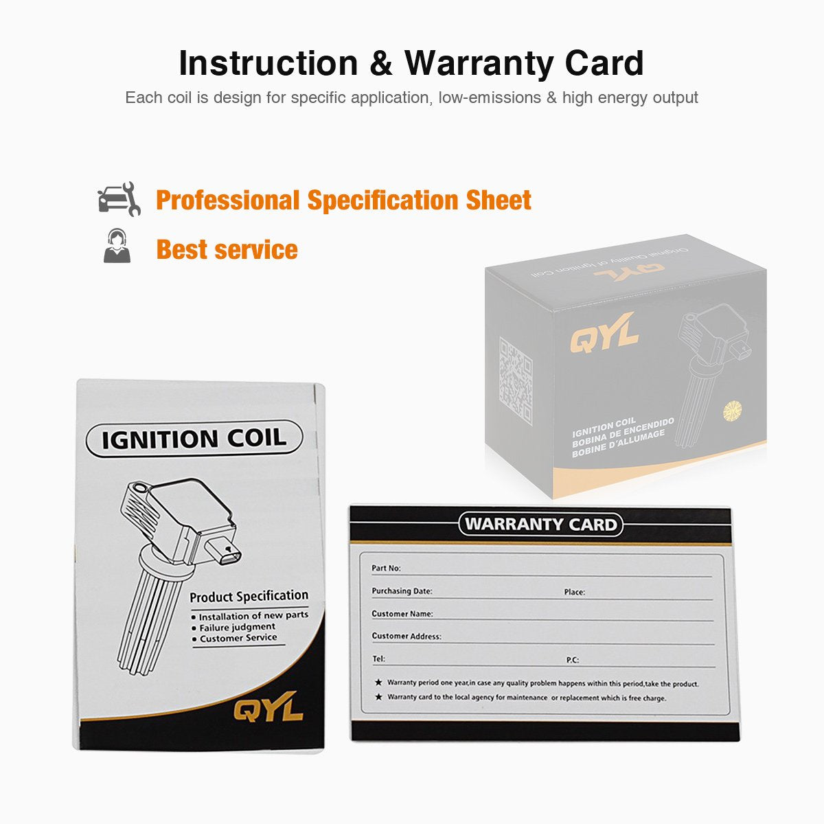 Q: How do I install the QYL Ignition Coils?A: Installation of QYL Ignition Coils is straightforward as they are a direct replacement for your original stock coils. However, it is recommended to consult a professional mechanic or refer to your vehicle's service manual for proper installation procedures.