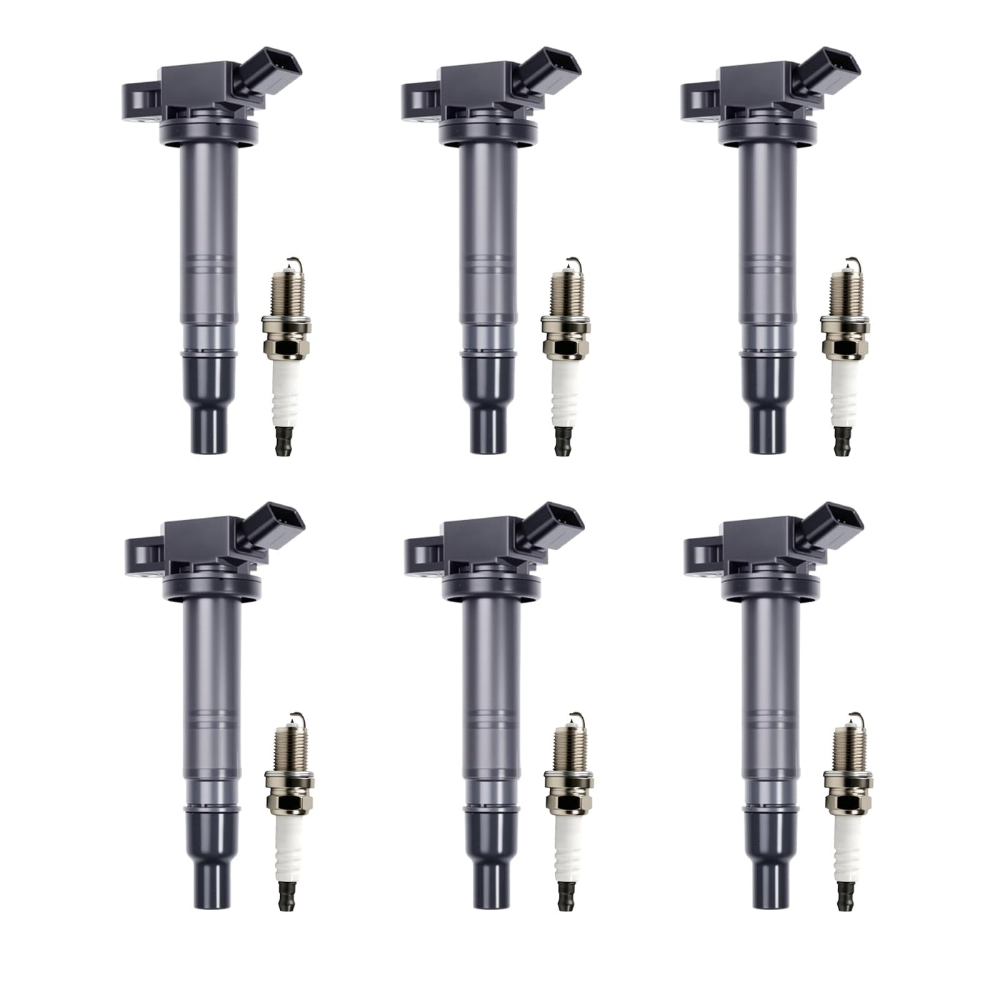 Set of 6 UF495 Ignition Coils and Spark Plugs Set Compatible with Toyota 2005-2015 Tacoma, 2005-2011 Tundra, 2003-2010 4Runner,