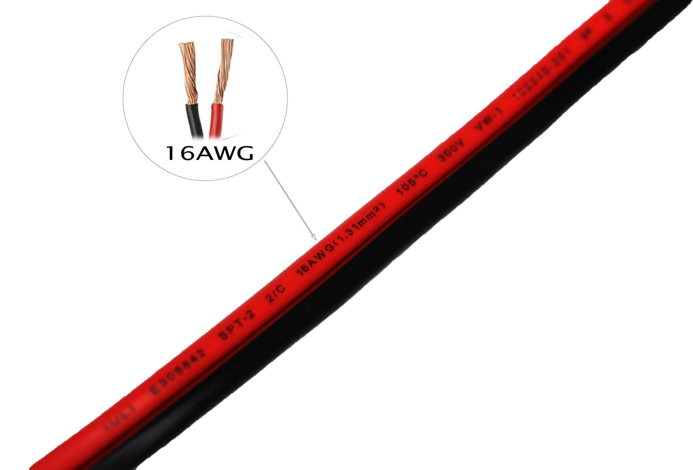 Q: What is the length and gauge of the SinLoon charger cable?A: The SinLoon Cigarette Lighter SAE Battery Charger Cable is 3 meters (10 feet) long and made with 16 AWG heavy-duty red and black copper wire for high conductivity.