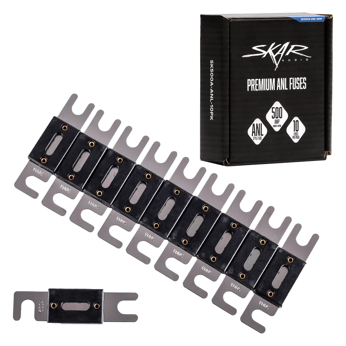 Skar Audio 500 Amp anl fuses are engineered to ensure the fusing in your electrical setup delivers maximum power, safety, and reliability. Protect your equipment with these high quality, nickel plated, 500 Amp anl fuses. Sold as a 10 pack (1 box containing 10 anl fuses).