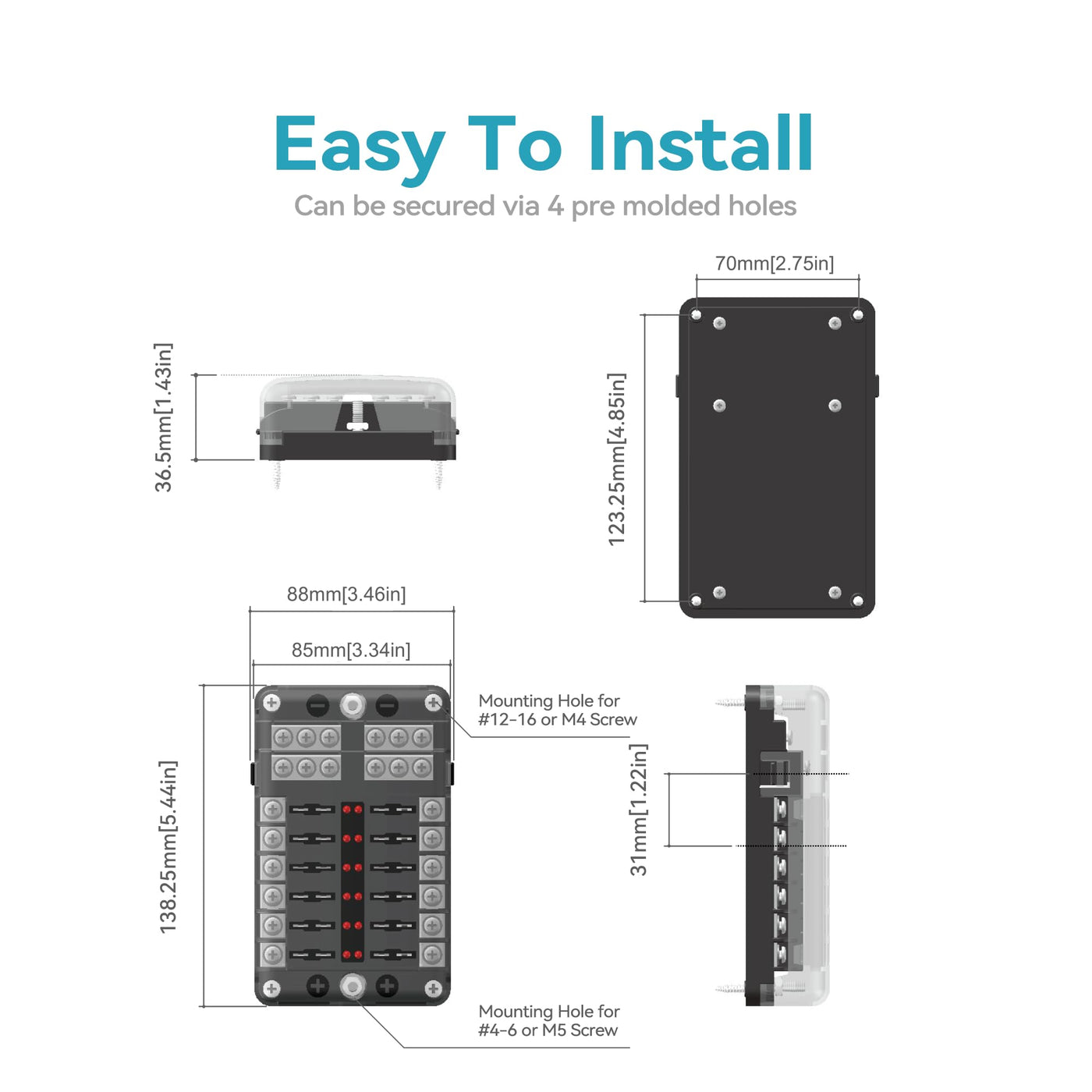 Q: Is the SOYOND Fuse Block waterproof?A: Yes, the SOYOND Fuse Block features a damp-proof cover, ensuring it is waterproof and suitable for marine environments and automotive applications.