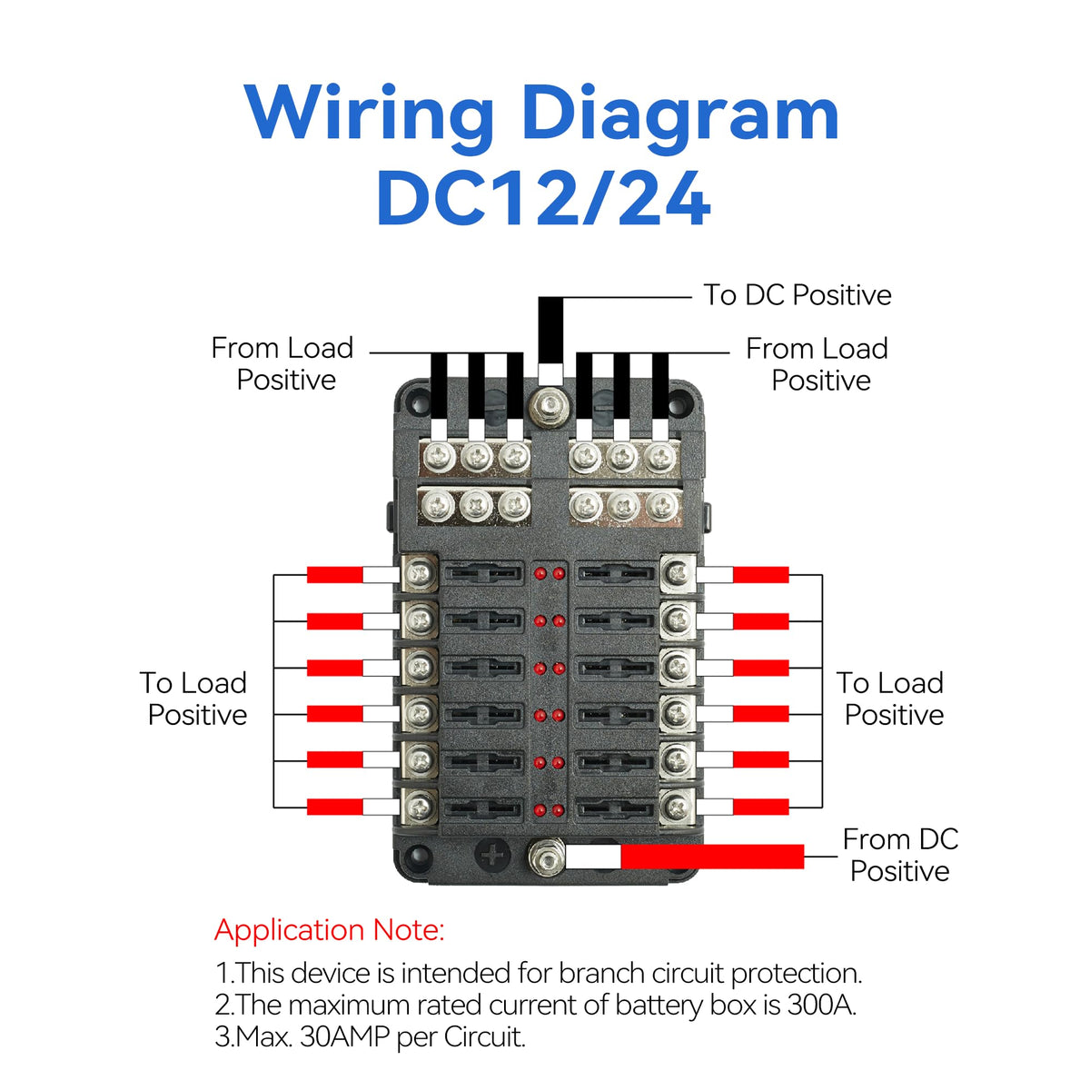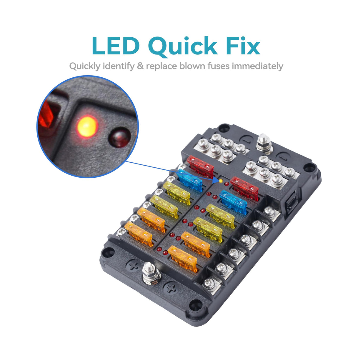 Soyond 12V Fuse Block, 12 Way Marine Fuse Block With Led Indicator Damp-Proof Cover 12 Circuits Fuse Box With Negative Bus Fuse Panel For Car Boat Rv Truck Dc 12/24V