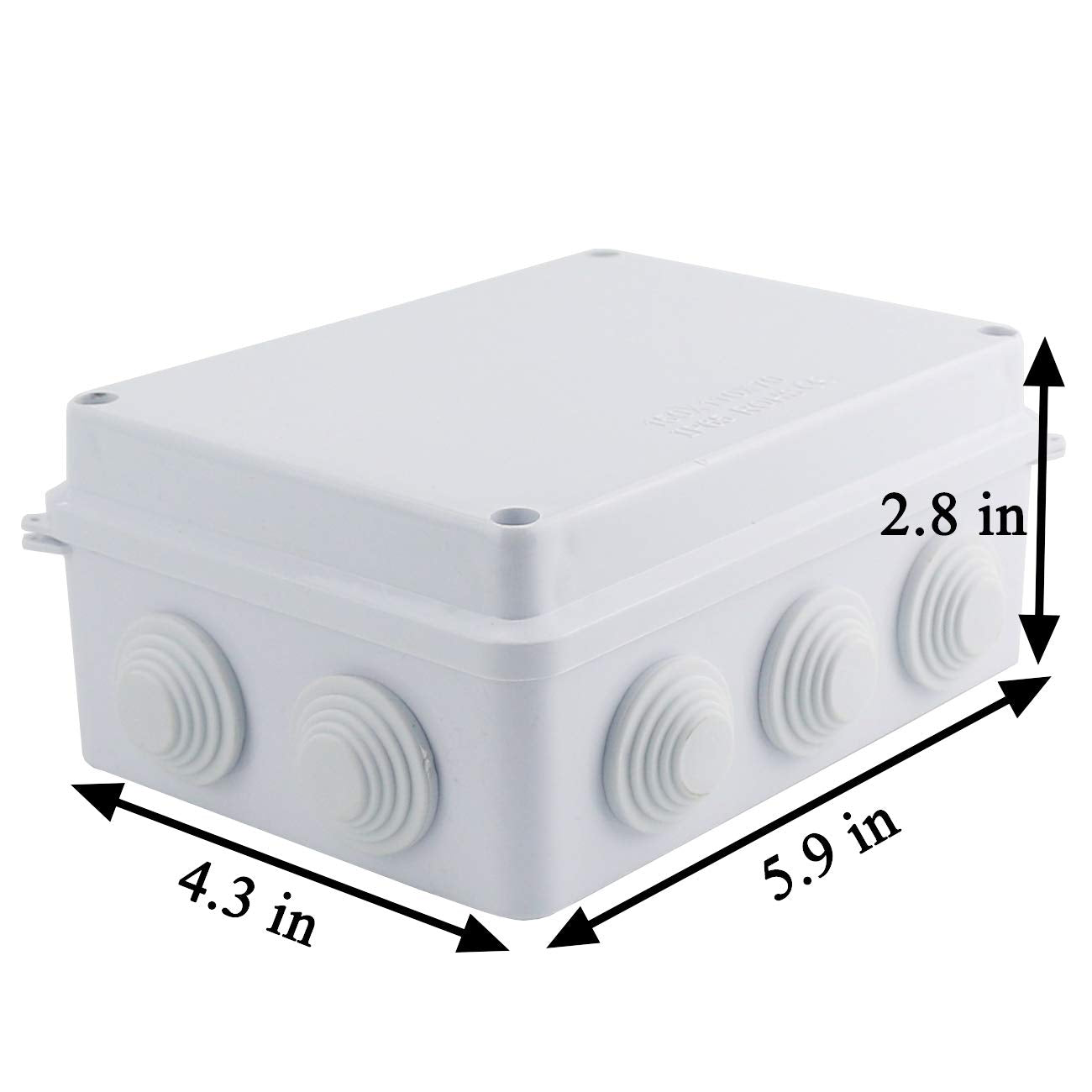 Q: What are the dimensions of the Sunnyglade Junction Box?A: The outer dimensions of the Sunnyglade Junction Box are 5.9 inches in length, 4.3 inches in width, and 2.8 inches in height, making it compact and easy to install in tight spaces.