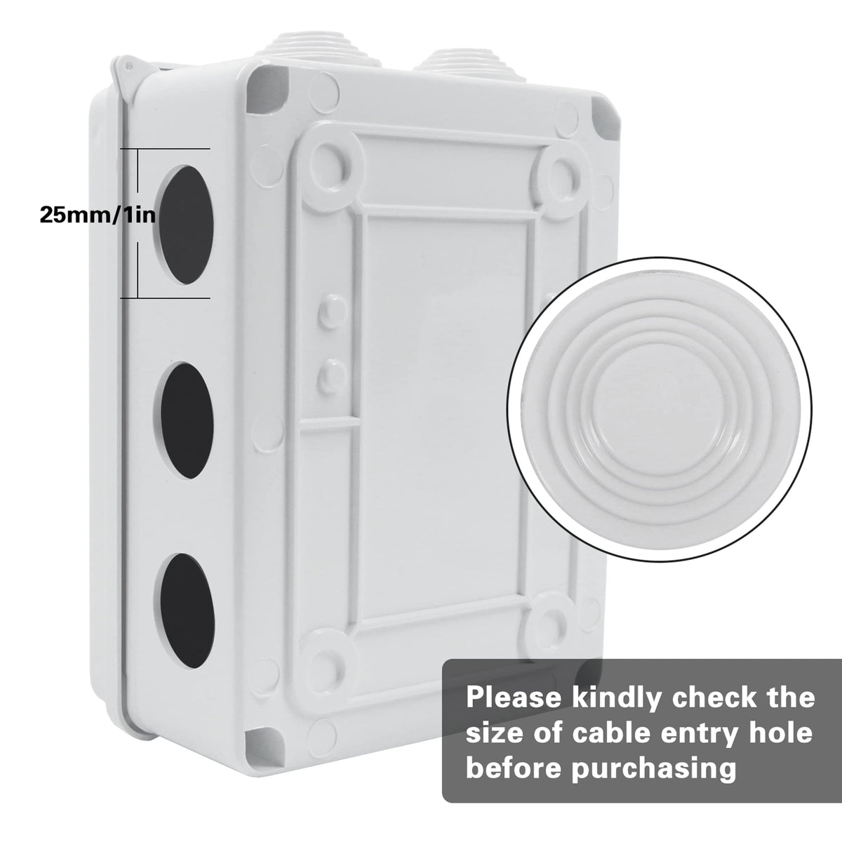 Installation is a breeze with the surface mount design, allowing you to set it up quickly and securely. The package includes the junction box and screws, making it an all-in-one solution for your electrical needs. The thoughtful design features 10 cable entry points, providing versatility for various wiring configurations.