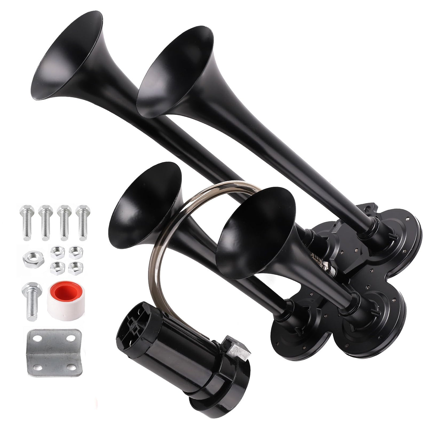 Q: How easy is it to install the train horn kit?A: The train horn kit includes a universal bracket, making installation straightforward and accessible for most users, regardless of their technical skill.