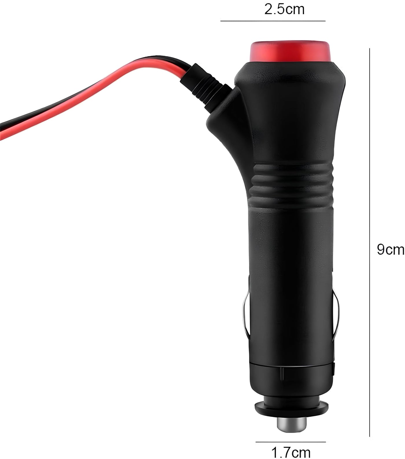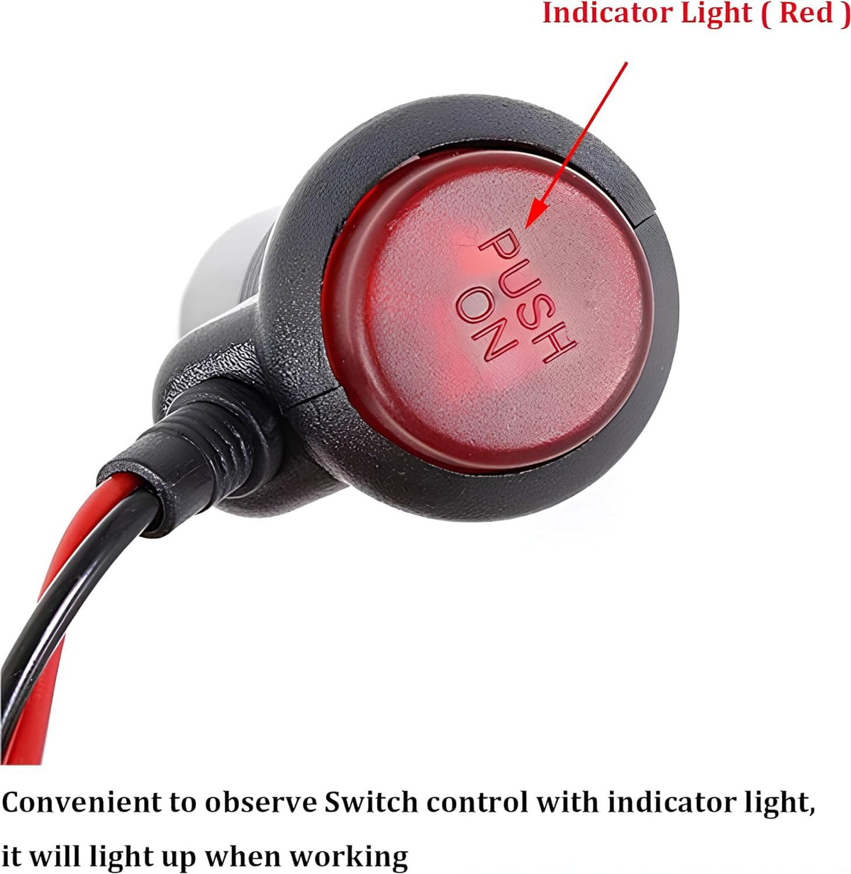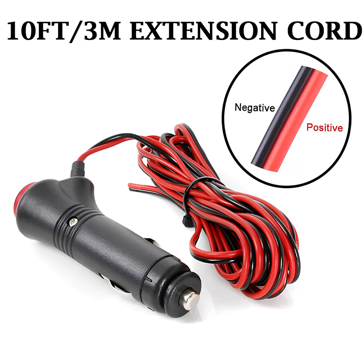 Universal Motorcycle Truck Car Cigarette Lighter Power Plug Cable Adapter Male Lighter With Switch Button Built-In 12V-24V 5A (10Ft/3 Meters With Indicator Light)