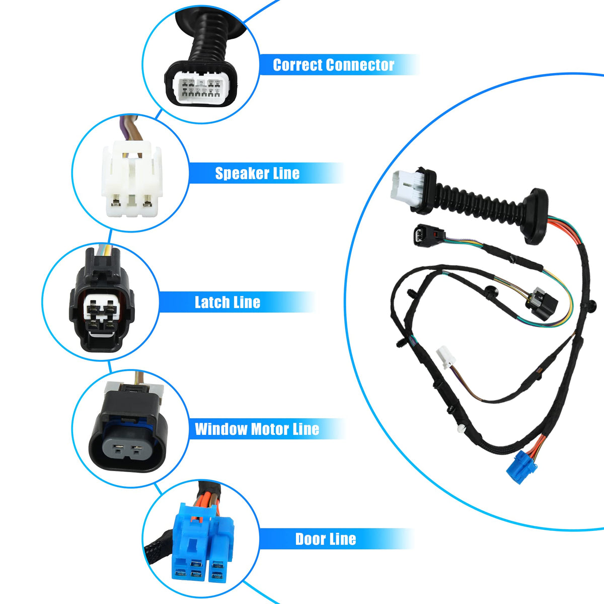 Why Need To Replace Rear Door Harness? The Vehicle Door Wiring Harness Will Be Aging, Cracking, Water Vapor Rusty Connector, Animal Chewing, Etc. After Long-Term Use, Which Will Cause The Line Couldn'T Use Normally. We Recommend You To Check And Replace Door Harness When The Vehicle Has Abnormal Door Openings, Unsmooth Window Lifts Or Power Lock Latch Problems.