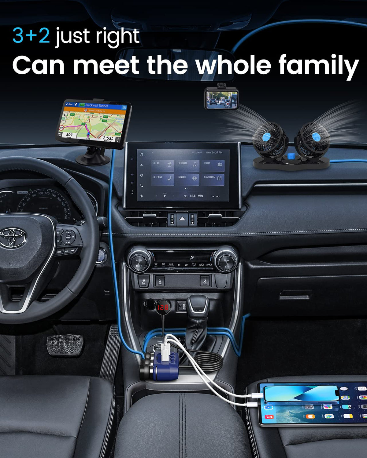 Q: What devices can I charge with the YANTU 3 Socket Cigarette Lighter Adapter?A: The YANTU 3 Socket Cigarette Lighter Adapter can charge various devices such as GPS units, dash cams, and heated seat covers, as long as the total power does not exceed 120W.