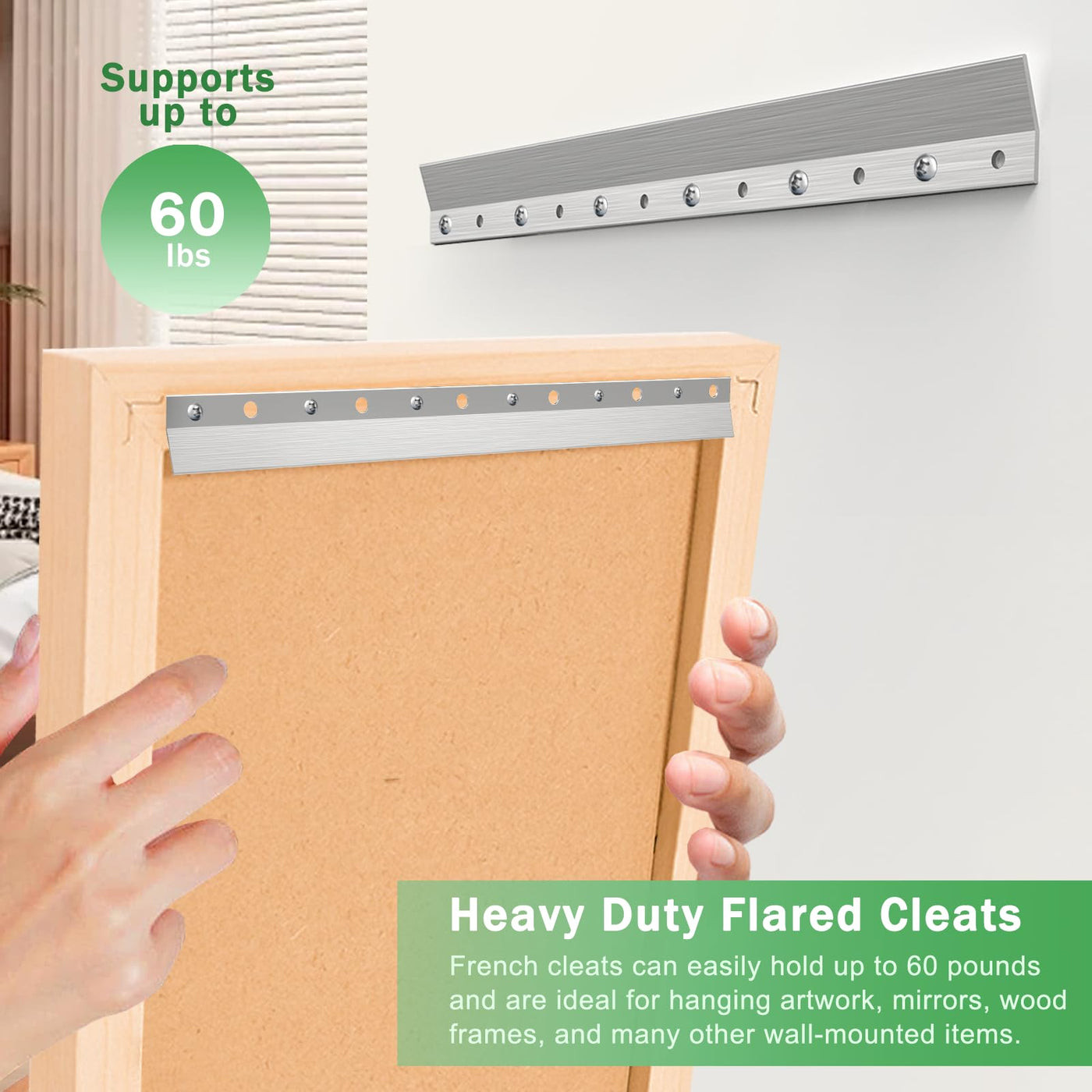 Q: What is a French cleat hanger and how does it work?A: A French cleat hanger is a wall mounting system that consists of two interlocking pieces. One piece is attached to the wall while the other is secured to the back of the item being hung, such as a picture frame or mirror. This design allows for easy leveling and supports significant weight, making it ideal for hanging heavy items securely.