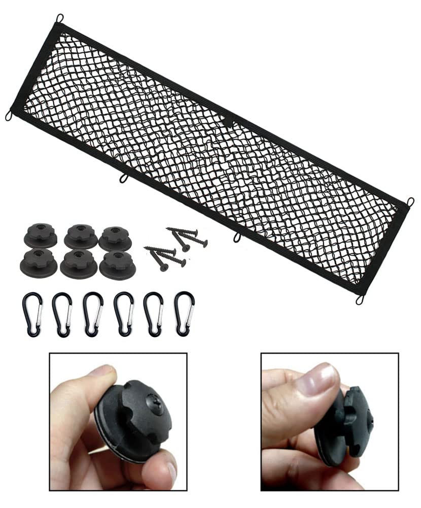 2 Pack, JE Extra Large Cargo Net for Trunk, RV, Boats Storage Mesh Pocket Net with 6 Mounting Screw/Built-in Hooks and 6 Carabin