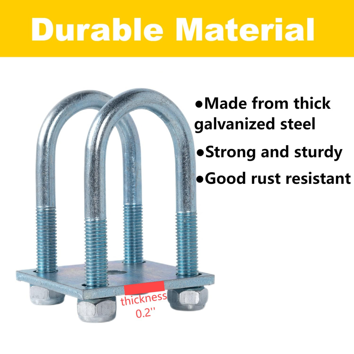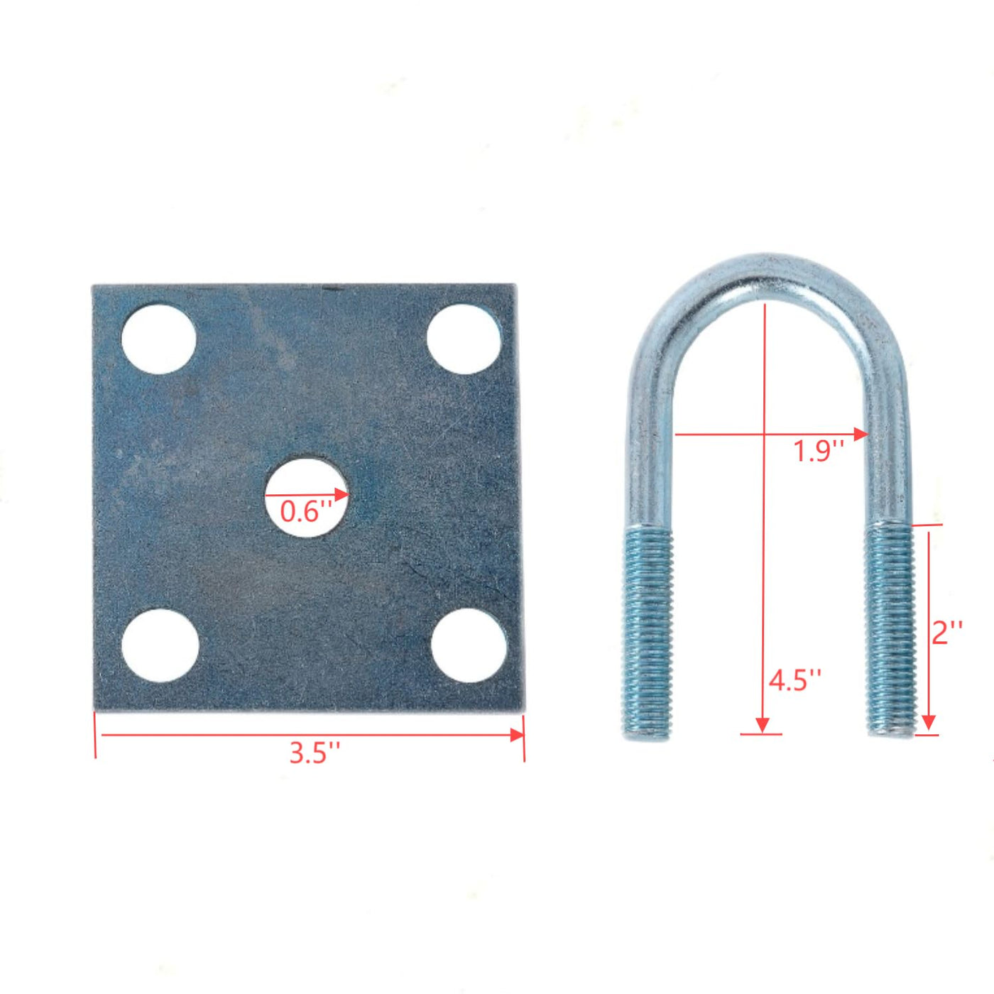2 Pack U Bolt Mounting & Plate Kit for 2,200 lb Trailer Axle (for 1-3/4'' Round Tube Diameter)