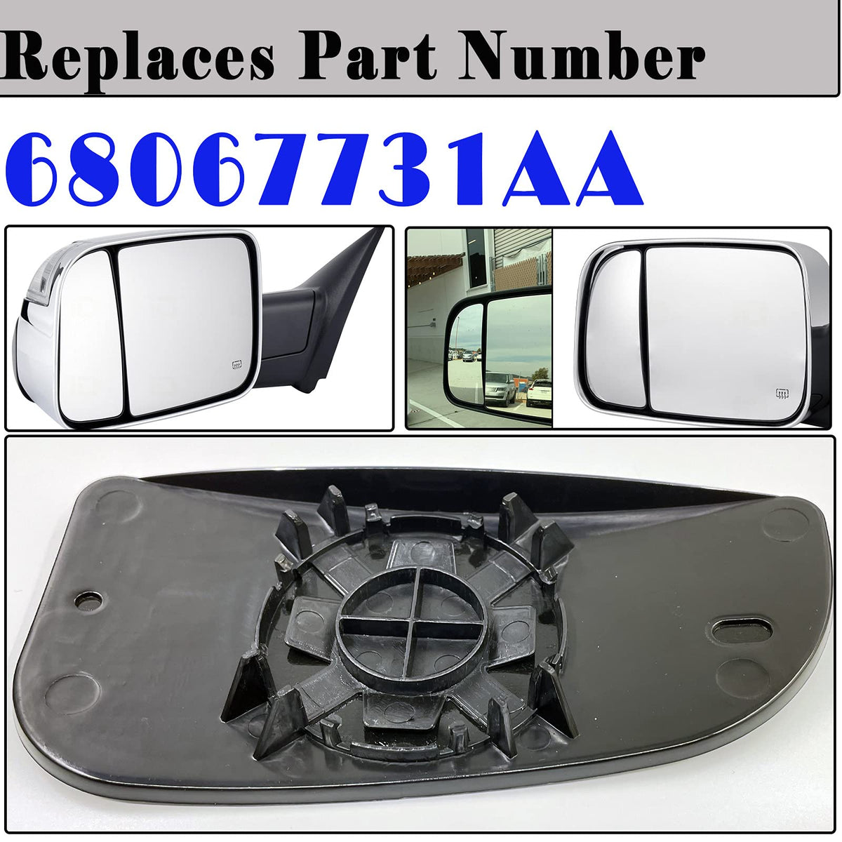 Ram Side Mirror Part Number: Left Pass Convex Lower Mirror Glass 68067731Aa, 128-04245, 68142673Ad, 68142673Ae, 68067727Aa | Direct Replacement: Compatible With 2009 2010 2011 2012 2013 2014 2015 2016 2017 2018 2019 2020 Dodge Ram 1500 2500 3500 4500 5500, Easy To Replaces Cracked And Damaged Ram Left Pass Convex Lower Mirror Glass | 68067731Aa Ram Mirror Durable Construction: This Ram Left Pass Convex Lower Mirror Glass Used The Finest Materials And The Latest Technology To Ensure Reliable Performance And Long Service Life, Trustworthy Quality, 100% Factory Tested. Product Is As Perfect As Original Equipment Mirror. | Direct Fit: Ram Towing Mirror Lower Glass Replacement Allows A Driver To More Easily See Vehicles And Other Dangers Behind Him And Make It Easier To Observe Areas Behind And At The Sides Of The Vehicle. | 30 Year Warranty: We Are Committed To Better Serving Our Clients Through Quality Products, Excellent Service And Great Value. If You Have Any Questions, Please Feel Free To Contact Us
