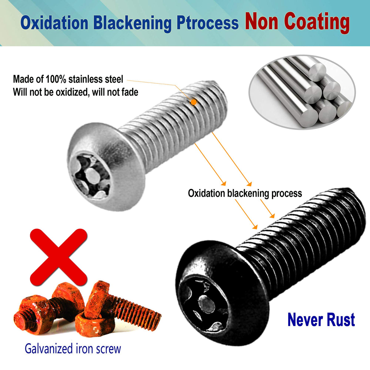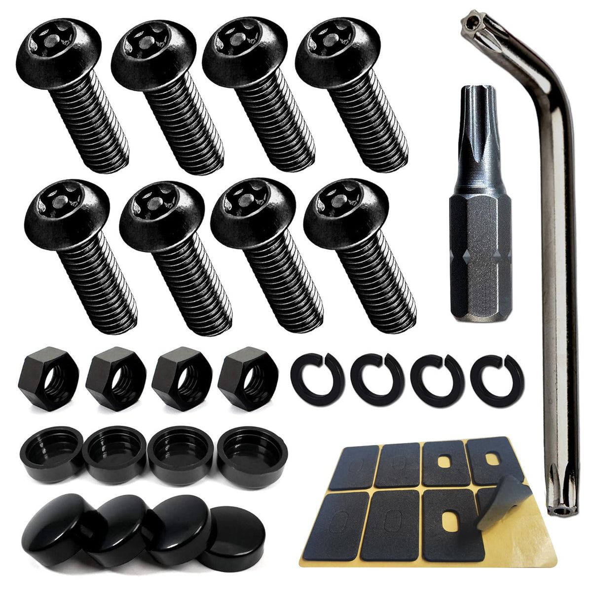 Stainless Steel License Plate Screws: Rustproof screws can well protect license plates- using high quality 304 stainless steel, heavy-duty, sturdy and corrosion-resistant, rust-resistant and weather-resistant. The black car tag screws use electrophoretic blackening process, Unlike the galvanized coating, our black screws will not fade, and the color will be uniform . With matte black screw caps, keep your license plate clean and tidy at all times | Anti Theft License Plate Screws: These security screws use a unique tamper-proof design- the top of the Pan Head screw is designed with a hexagonal button head with a thimble in the center. The Allen wrench cannot install and remove these screws. You need to use the anti-theft wrench provided by us. Theft proof screws can keep the thief away from your license plate. Big Pan head screws are suitable for license plates with large apertures | 1/4 Inch (M6) License Plate Mount Hardware: In the black license plate fastener kit, we provide: screws bolts, fastener nuts, screwdriver, black caps and washers. M6*20 (1/4*3/4'') and M6*16mm (1/4*5/8'') long screws are suitable for the combined mount of tag plate, frame, and cover of most motorcycles, cars, trailers, and trucks. Machine screws with fasten nuts are suitable for rear trunk and front bumpers | Rattle Proof License Plate: The 8Pcs black license plate pad can be pasted on the back of the metal license plate to prevent directly contacting the car body and avoid scratching the paint surface, reduces the vibration and noise of the license plate. Black license plate screw cap Cover the screw head to perfectly decorate your black license plate or car- whether you are looking to get that blacked outlook or just want the screws to match the color of your car | Manufacturer Guarantee: We focus on the design and production of license plate frames and license plate screws. If the screws in our anti-theft license plate fastener kit are not suitable for your car model, please contact us for a replacement.