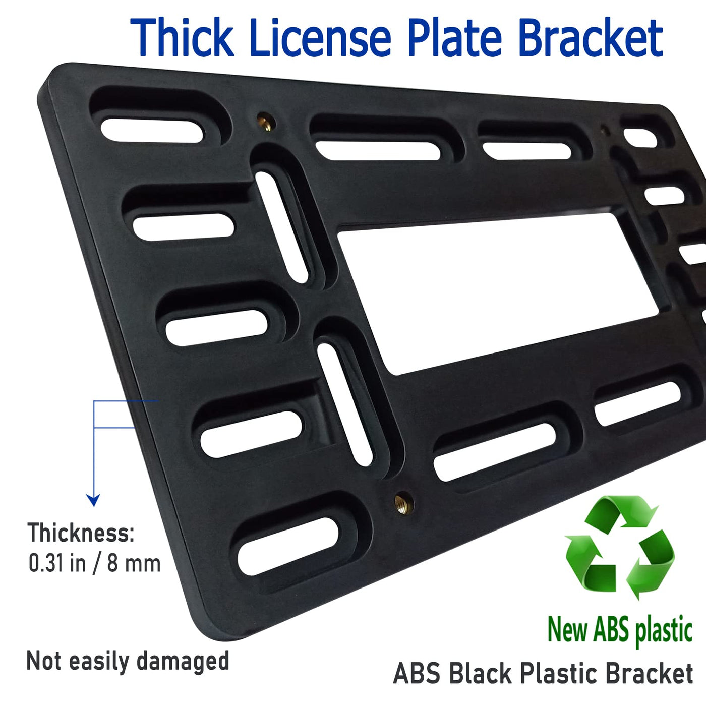 Front License Plate Mounting Kit- Suitable For Front Bumper License Plate Mount With 2 Holes Or 4 Holes Or No Drill Holes. Includes All Mounting Hardware For Front License Plate Frame. Features: Made Of Abs Plastic, Anti-Rust And Anti-Corrosion, With Rattleproof License Plate Pad, Avoid The Metal License Plate Directly Contact The Car Paint, Prevent Scratches And Noise; There Are Multiple Screw Mounting Holes On The Plastic Bracket, Which Can Match License Plate Holes Of Various Hole Distances And Apertures, And Are A Good License Plate Adapter; 4 Holes With Copper Threads, Which Can Reliably Fasten The License Plate On The Bracket; The Aluminum License Plate Frame Is Light Weight,&Nbsp; The Black Powder Coating Will Not Fade Or Fall Off. It Is A Good Decoration For Black Cars Or License Plates;Slim Frame Will Not Cover The Registration Sticker On The 4 Corners Of License Plate Which Is Suitable For Most States In The United States;The Universal Us License Plate Frame Is Suitable For All American Standard 12*6 Inch License Plates; Supplied With License Plate Hardware - Non Rusting License Plate Screws And Black Screw Caps For Easy License Plate Installation; Stainless Steel Cable Ties Can Install The License Plate On The Heat Dissipation Grille, Suitable For The Front Bumper With No Drill Hole; Include: 1X License Plate Bracket 1X License Plate Frame 8X License Plate Screws And Bolts 4X Black Screw Caps 8X License Plate Mat (Small Piece) 3X Stainless Steel Cable Ties