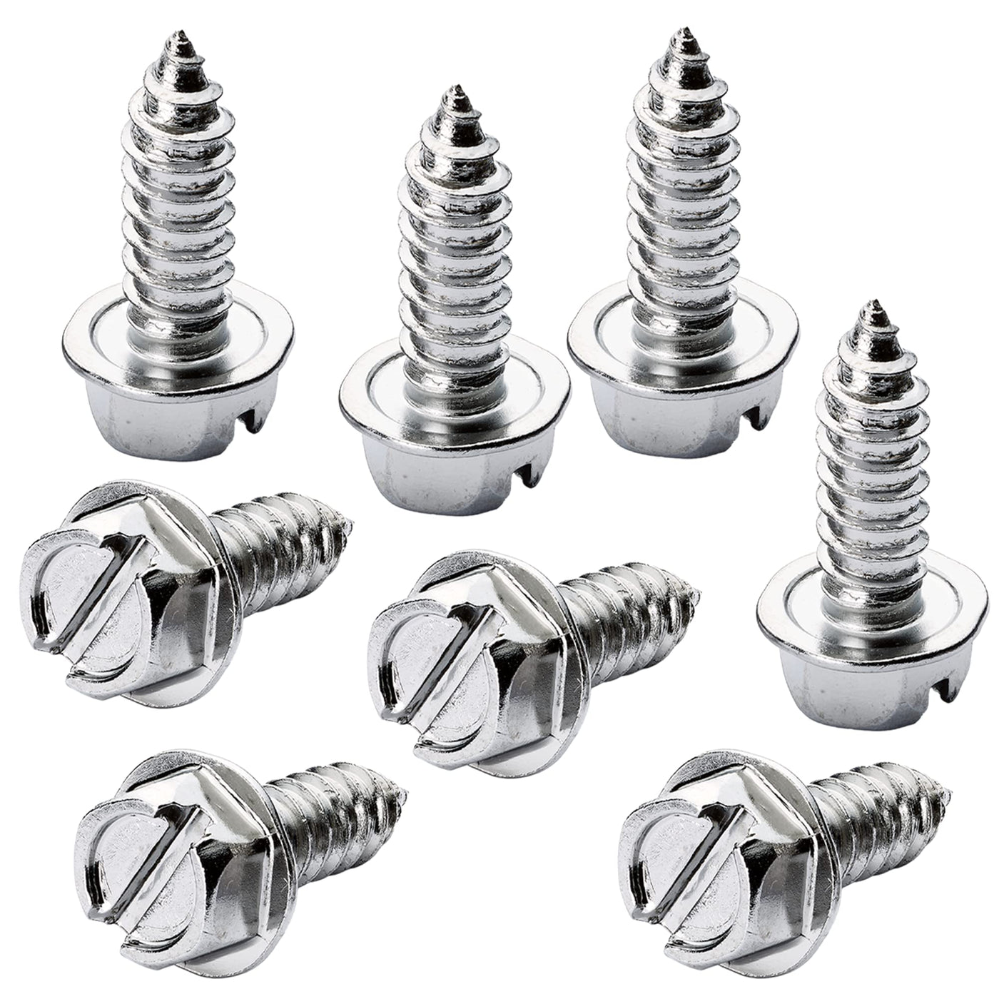 Chrome License Plate Screw Kit - Set Of 8 Stainless Steel Fasteners For License Plates, Frames, And Covers On Domestic Cars, Trucks, Vans, Suvs - Rustproof, Self Tapping Mounting Bolts (Chrome Plated)