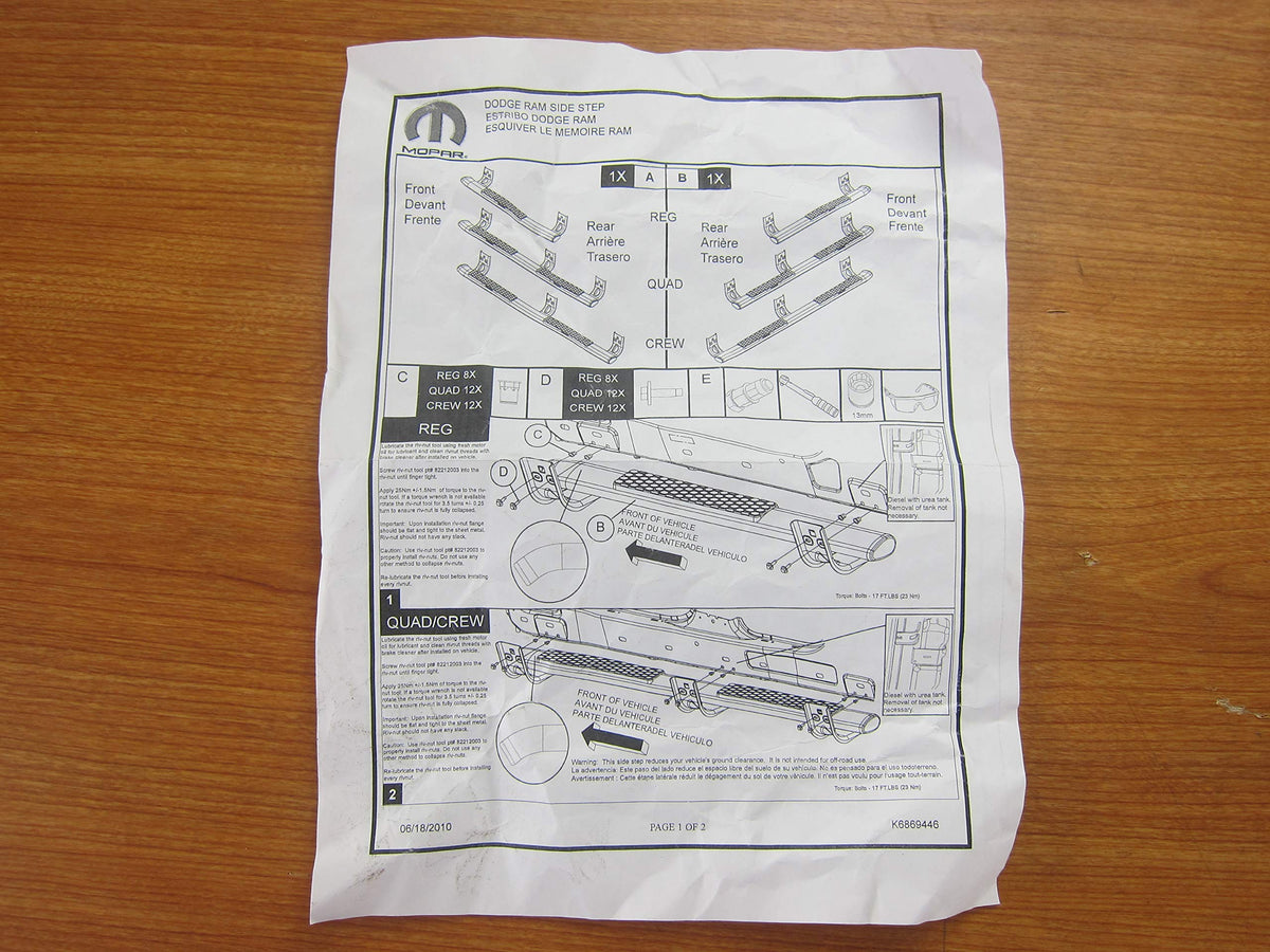 Direct Factory Oem Replacement For Side Step Hardware Installation Kit. Compatible With The Following Vehicles. - 2009-2012 Ram 1500 - 2010-2012 Ram 2500 - 2010-2012 Ram 3500 - 2011-2013 Ram 4500/5500 Part # 68044460Aa