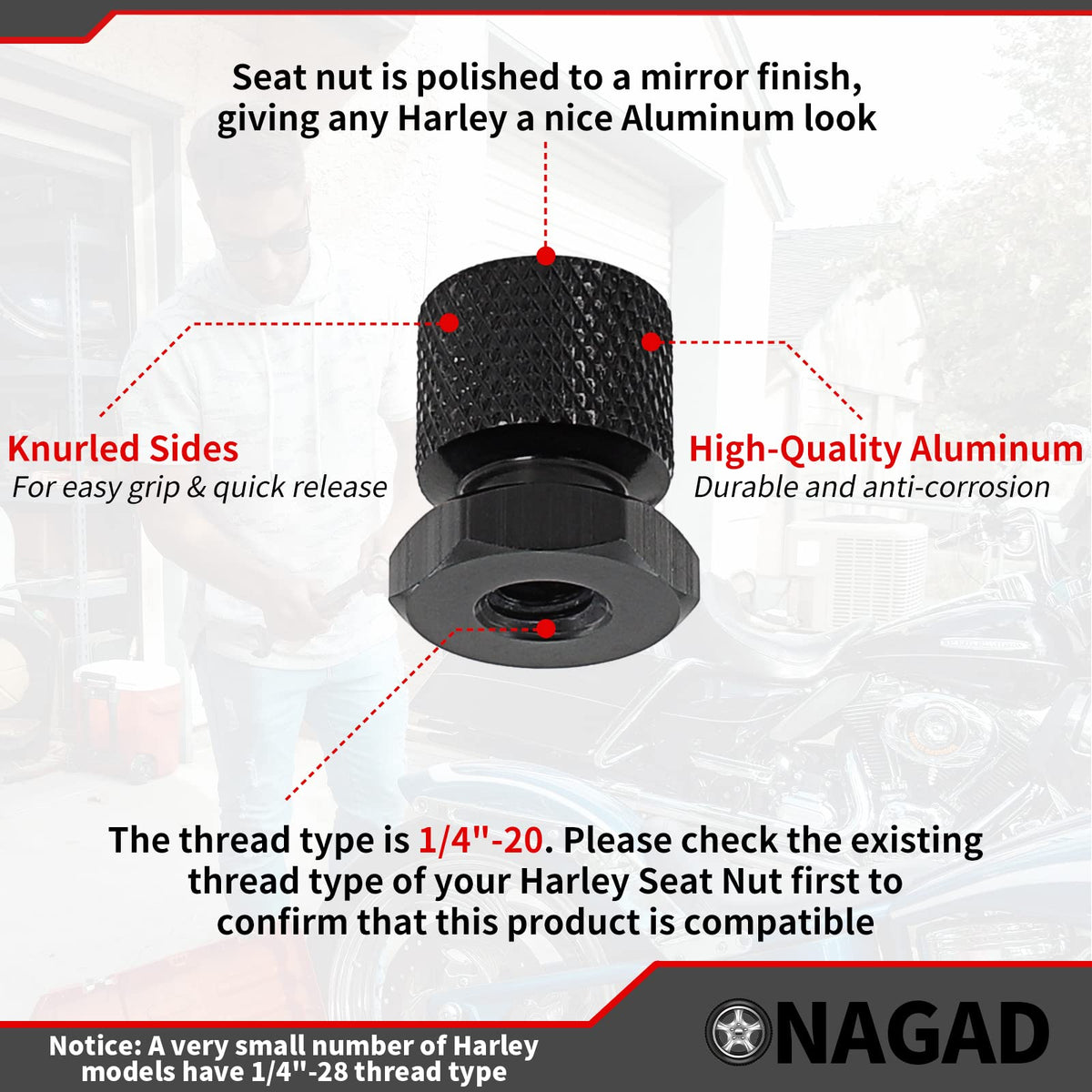 With ONAGAD Harley Davidson Solo Seat Mounting Nuts, you will experience a more portable and comfortable life.Specifications: Material: High-quality Aluminum Weight: 0.28 Ounces Color: Black Package Included: 2 Solo Seat nuts