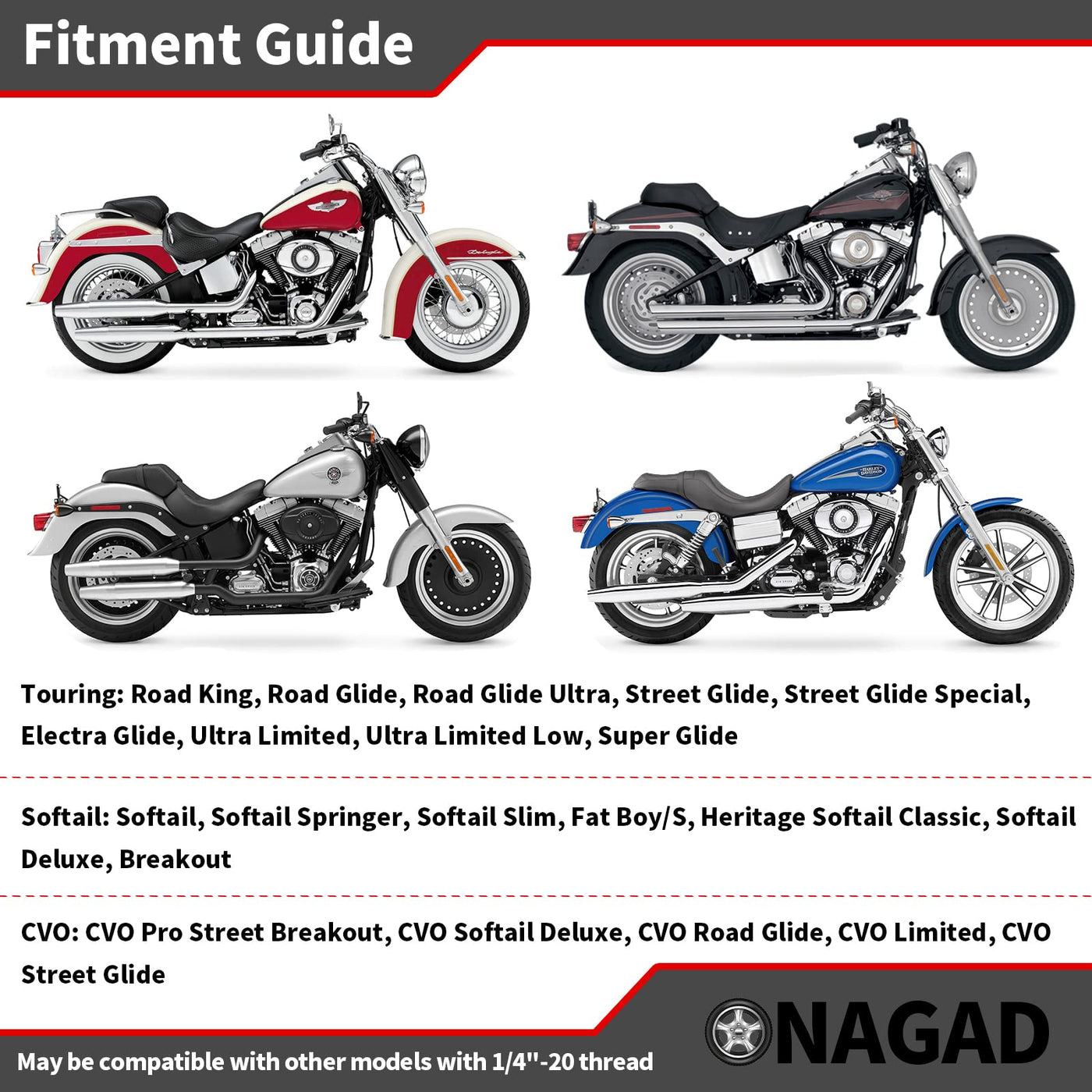 Q: Are these solo seat mounting nuts compatible with all Harley Davidson models?A: Yes, the ONAGAD Solo Seat Mounting Nuts fit all models of Harley Davidson Touring and Softail, including Road King, Street Glide, Road Glide, Ultra Glide, Springer, Heritage, Deluxe, Fat Boy, Breakout, and others that have a 1/4"-20 thread.