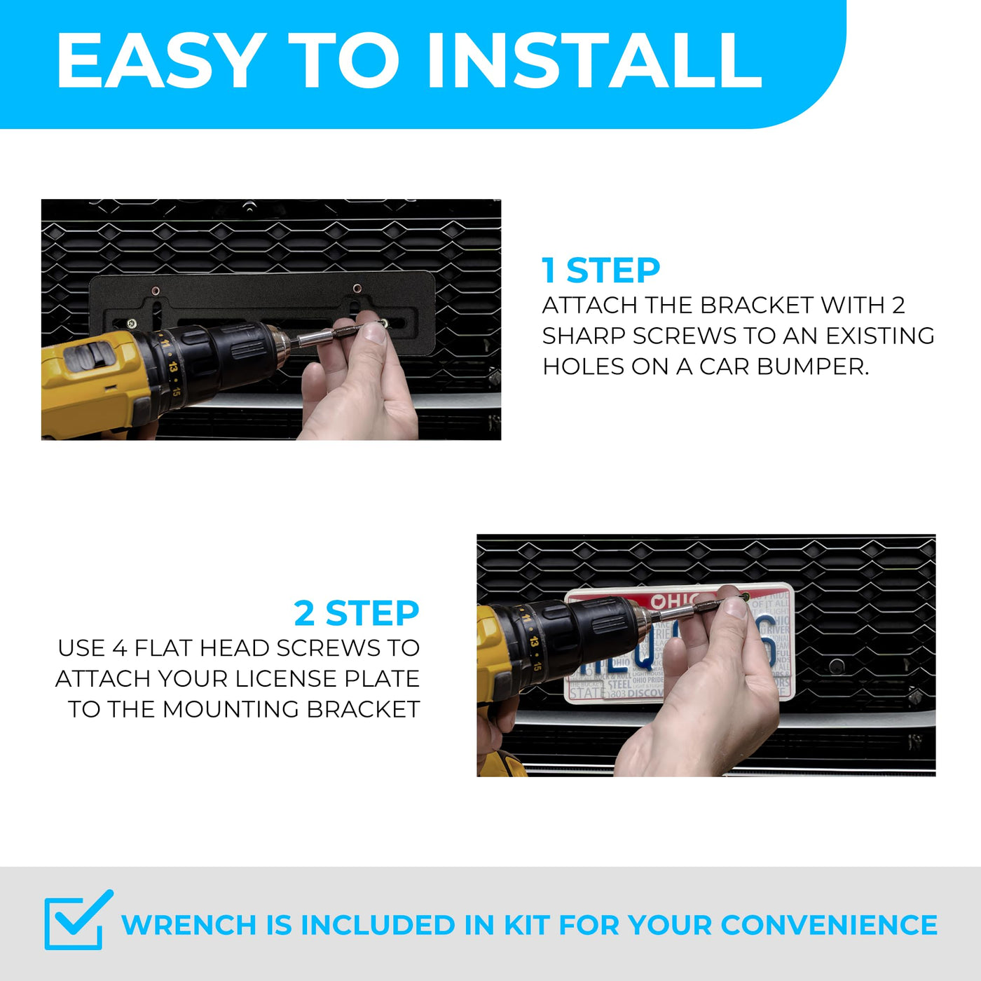 Q: Will I need to drill new holes in my bumper to install this bracket?A: Installation may require the creation of new holes in your car bumper, depending on the specific model and pre-existing mounting points.