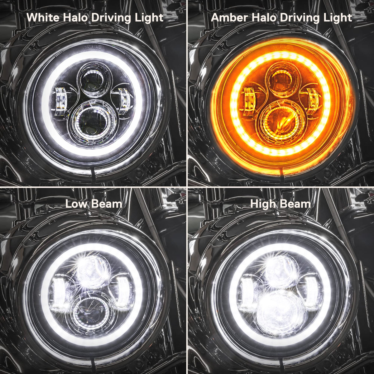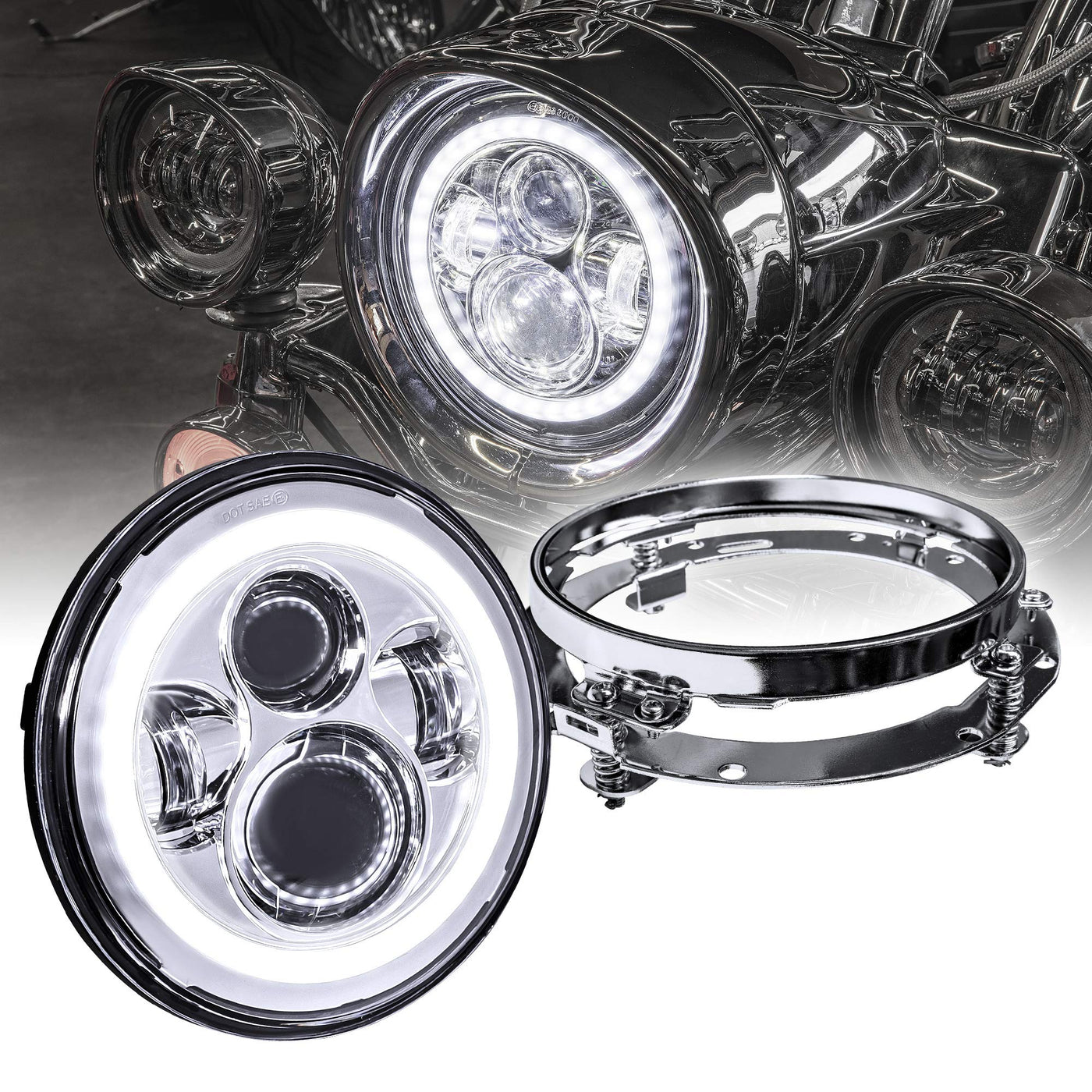 TRUE MODS 7'' LED Headlight for Harley Davidson + Mounting Bracket [Chrome-Finish] [HALO DRL] [4500 Lumen] [H4 Converter Plug n