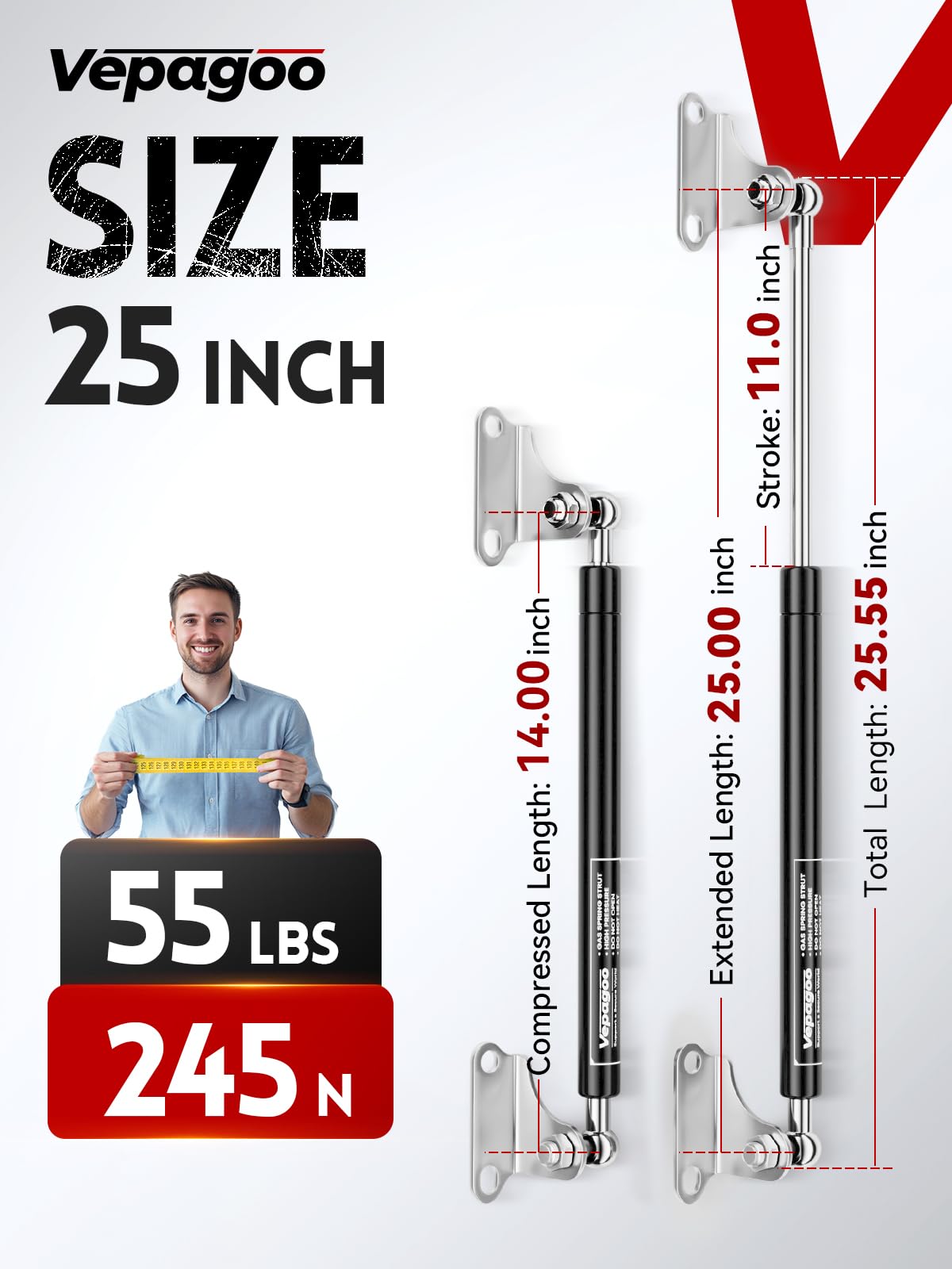 Vepagoo 25 Inch Gas Struts 55Lb/245N Shock With Mounting Brackets, Rv Bed Storage Door Lift Support, Heavy Lid Duty Springs (Fit