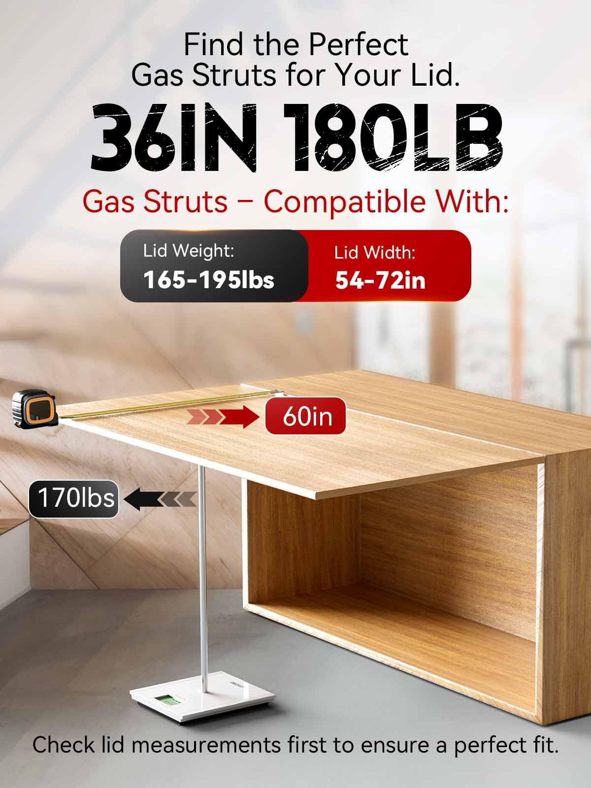 Vepagoo 36 Inch 180Lb/801N Gas Struts Shock Spring With Mounting Brackets, Lift Supports For Rv Bed Heavy-Duty Lid Box Trailer C