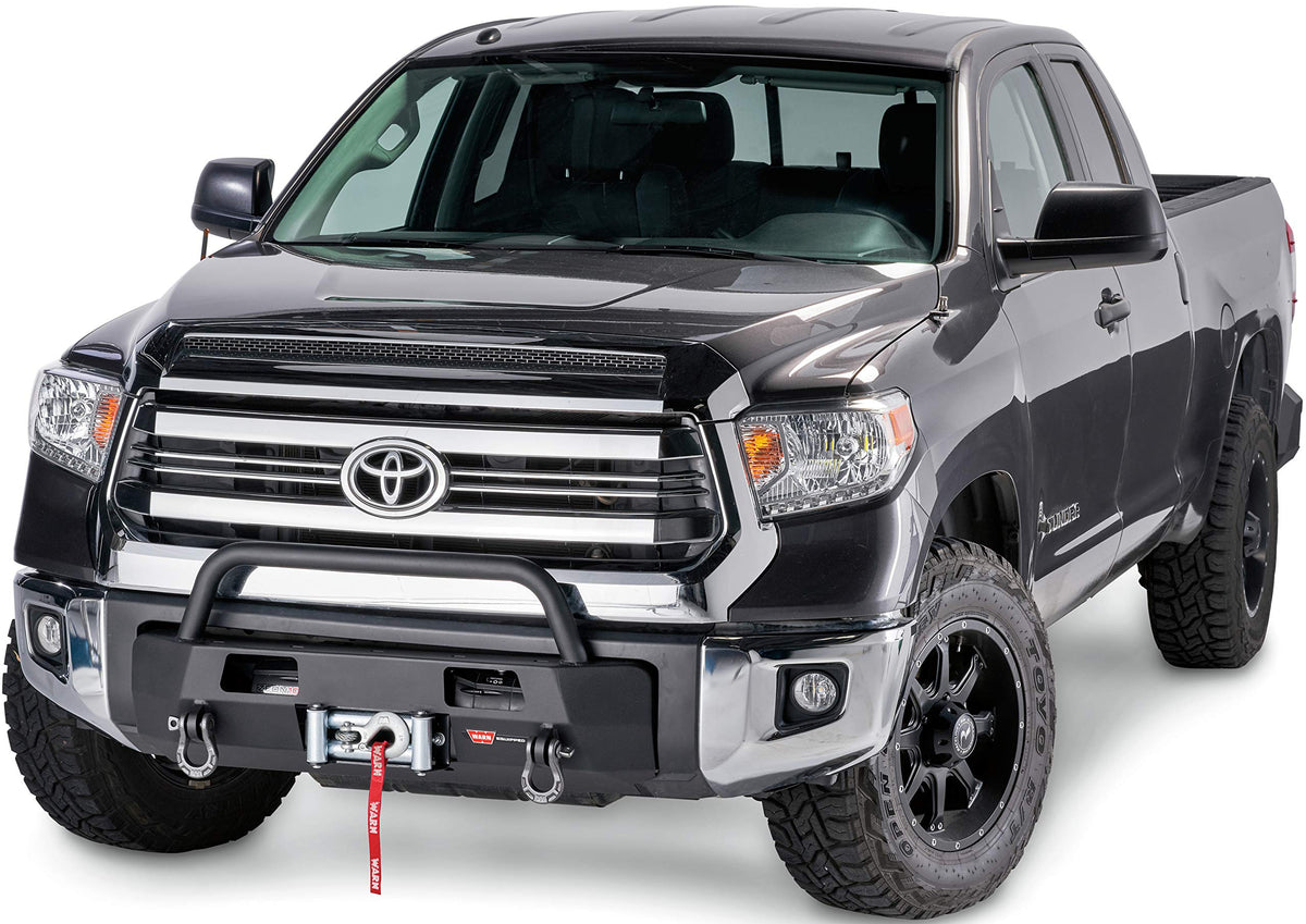 Descriptionconceal Your Pulling Power Behind A Semi-Hidden Steel Bumper Designed To Provide Aggressive, Yet Understated, Front-End Protection That Wont Clash With The Look Of The Original Equipment. The Warn 103209 Semi-Hidden Winch Mount Kit For The 2014-Current Toyota Tundra Pickup Truck Has The Factory Style With Added Protection, And Fits All Current Warn Mid-Frame Winches Up To 12, 000 Lbs. (Excluding M8274-50, 9. 0Rc, Powerplant). The Mount Is Easy To Install With Minimal Cutting, There Is No Need To Relocate The Winch Control Pack. This Carrier Is Constructed With 1/4'' Steel And Acts As A Fortified Cross Beam And Has A Welded, Low-Profile, 2'' Single-Hoop Bull Bar Grille Guard Tube That Adds Front End Protection. Features A Built-In Port For Clutch Lever Access Or Lighting (Except 3Rd Gen Tacoma) And Thru-Welded D-Ring Mounts. This Semi-Hidden Winch Mounting System Is Constructed Of Heavy Gauge Steel With A Durable Black Textured Powder Coated Finish To Protect Against Corrosion And Is Made In The Usa.